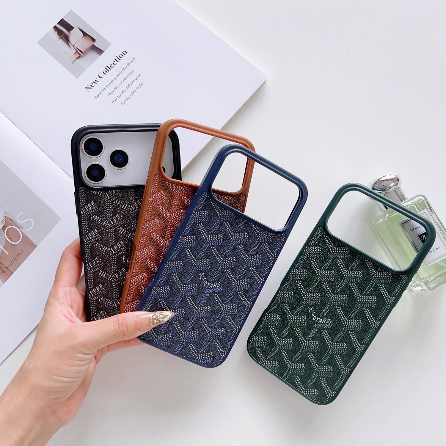 ★高級感デザイン 幾何学柄 レザー調 iPhone17 Pro Max|iPhone17 / 16 / 15 14 13シリーズ対応|上品 マットカラー メンズ レディース兼用 シンプル シック スタイリッシュ おしゃれ カバー|ブラック / グリーン / ブラウン / ネイビー