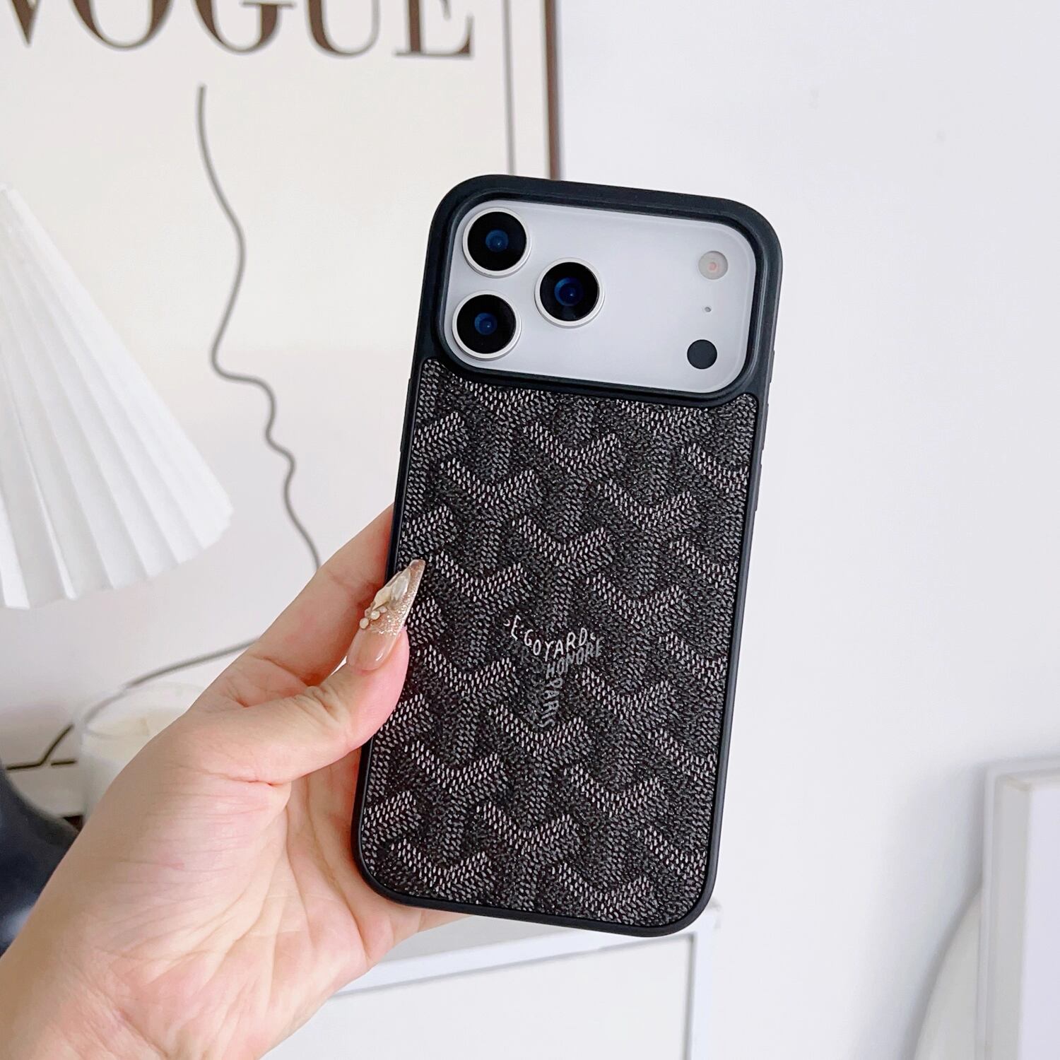 高級感あふれる幾何学模様が目を惹くレザー調iPhoneケースです。