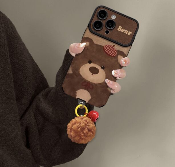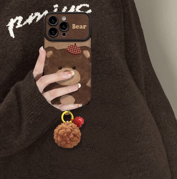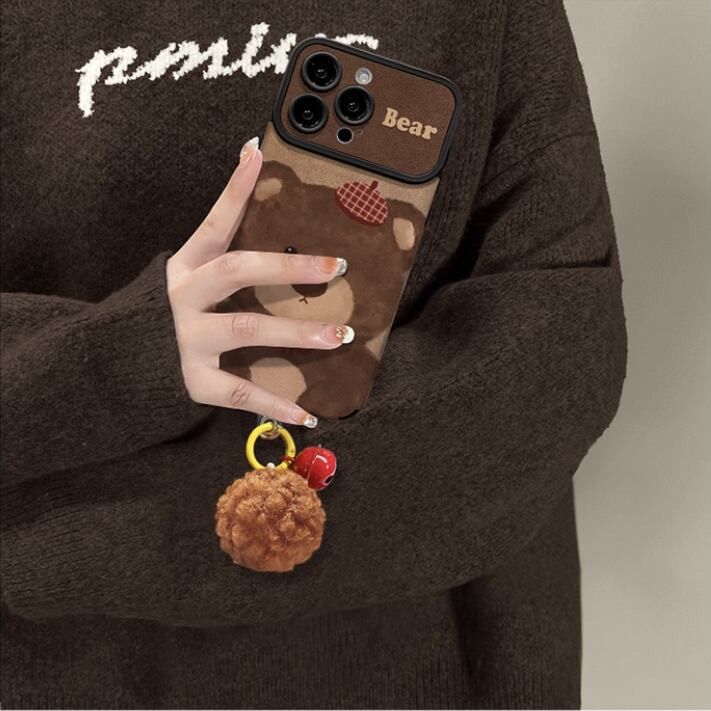 テディベア iPhone17 Pro Maxケース ぬいぐるみ風 秋冬向け iPhone Airカバー かわいい やさしいブラウンカラー iPhone16 Proケース ふわふわ ポンポン アイフォン15ケース 鈴付き 癒される手触り スマホケース iPhone14Pro 13ケース プレゼント オススメ