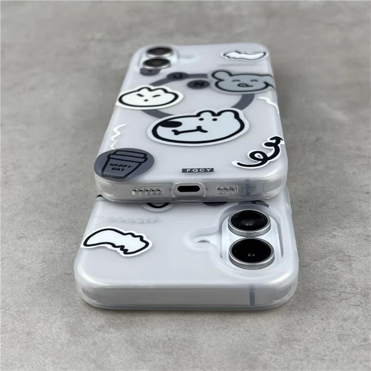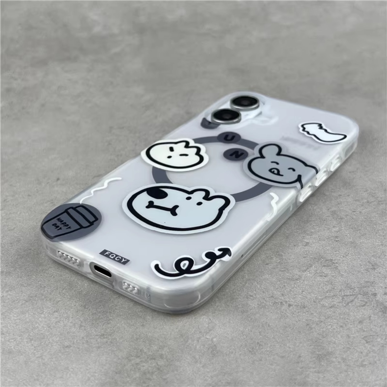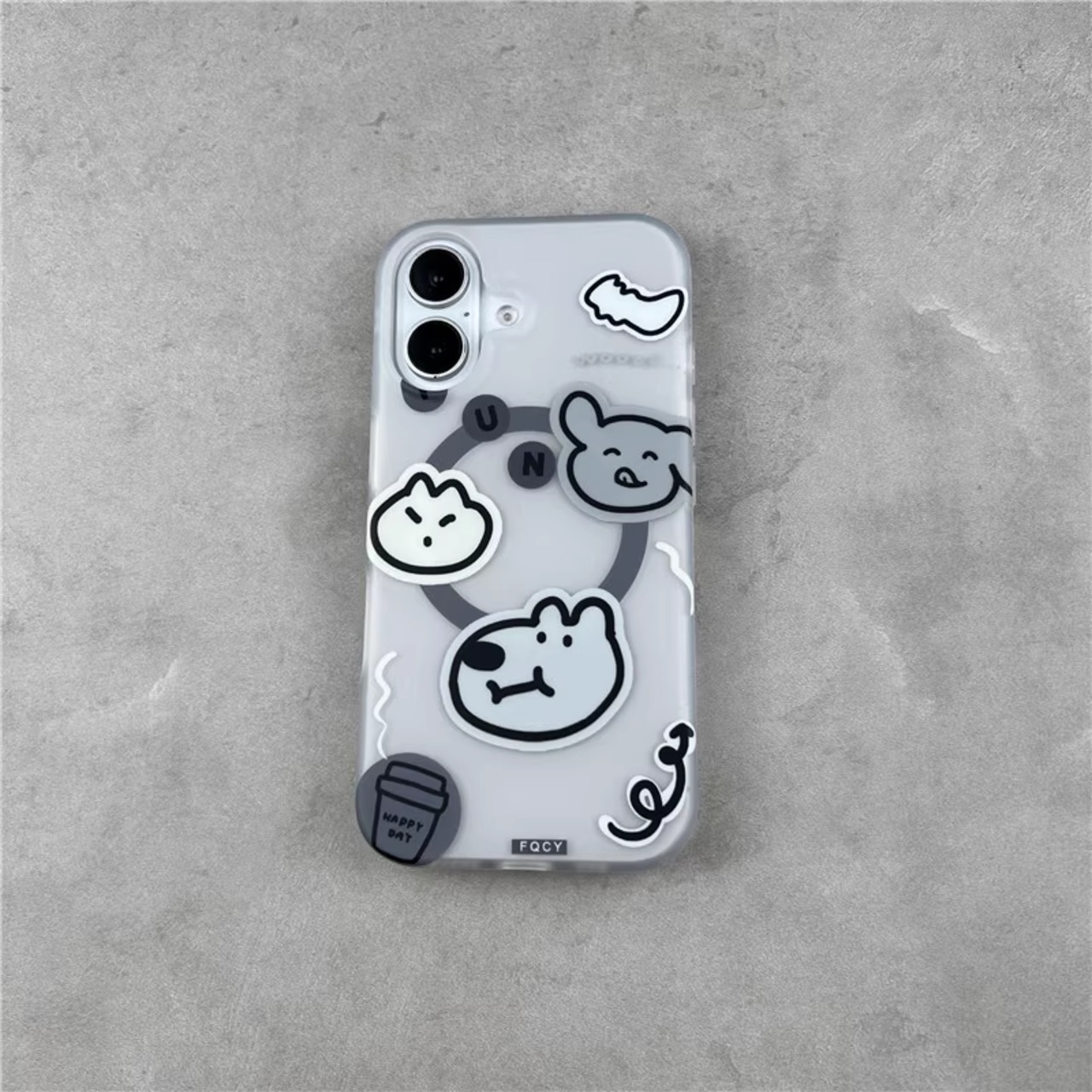 ゆるかわアニマルたちがアクセントになった、おしゃれなマグセーフ対応iPhoneケースです。