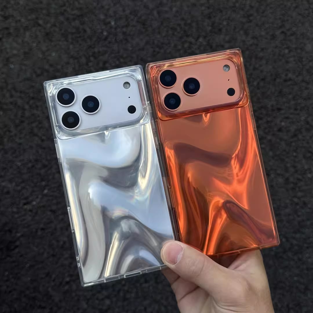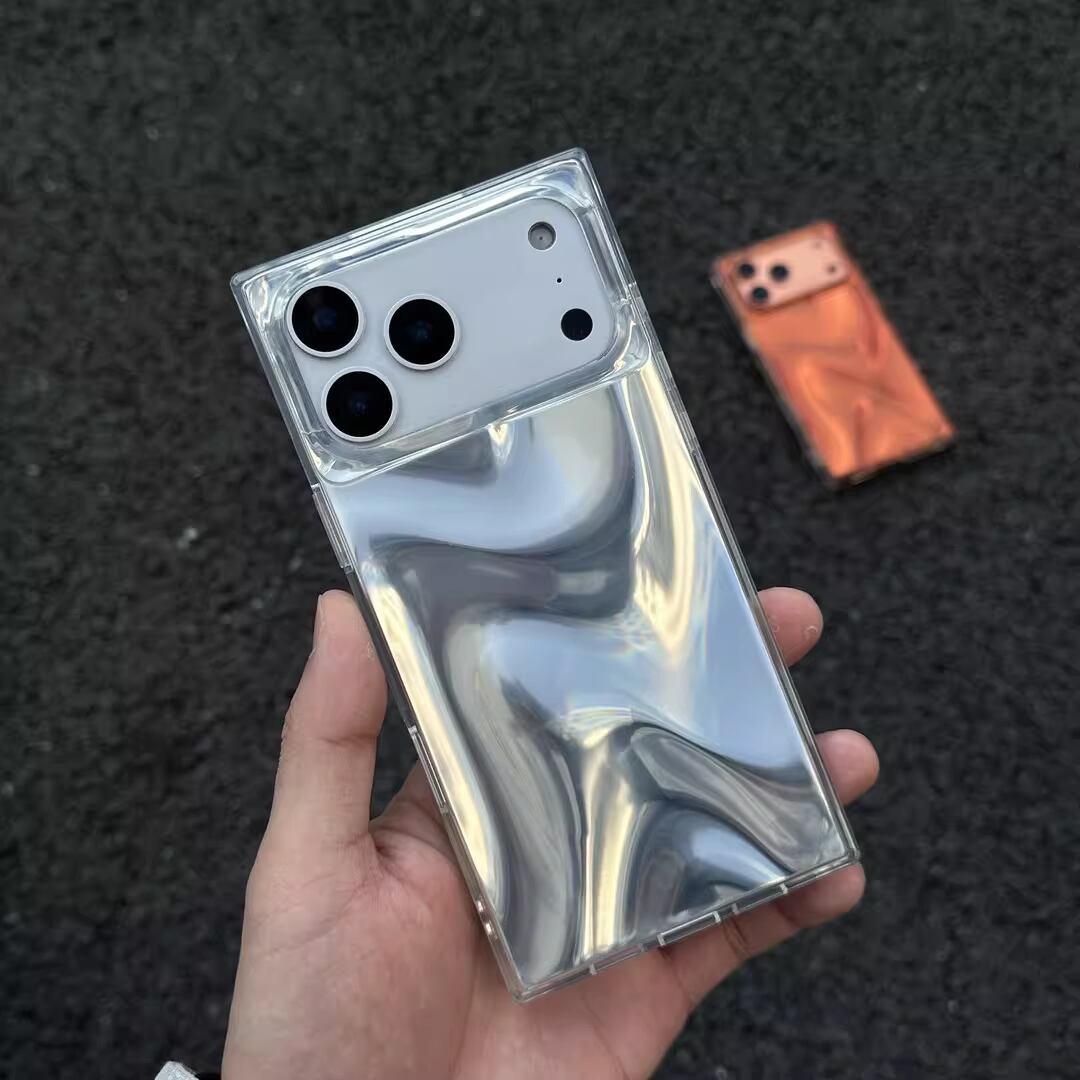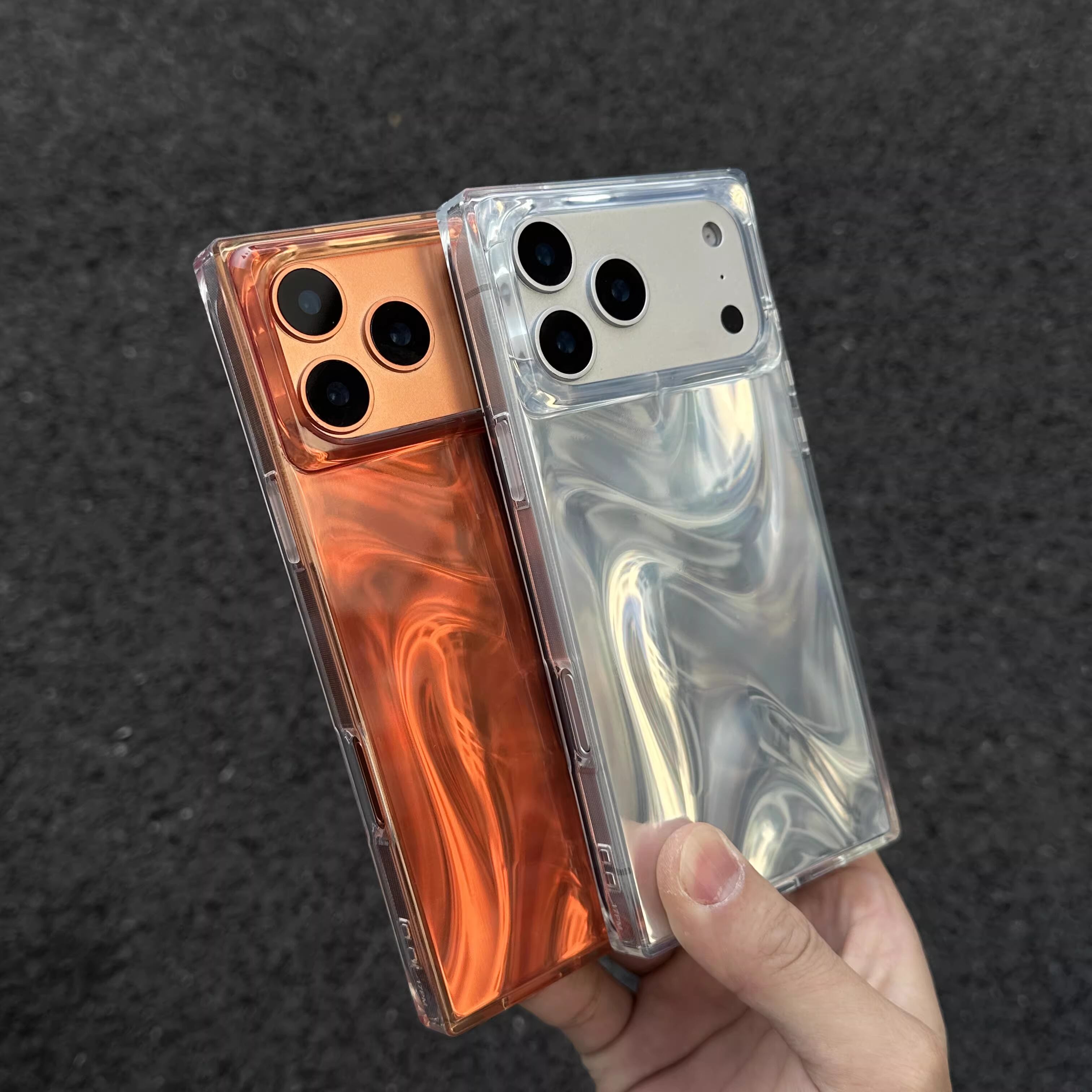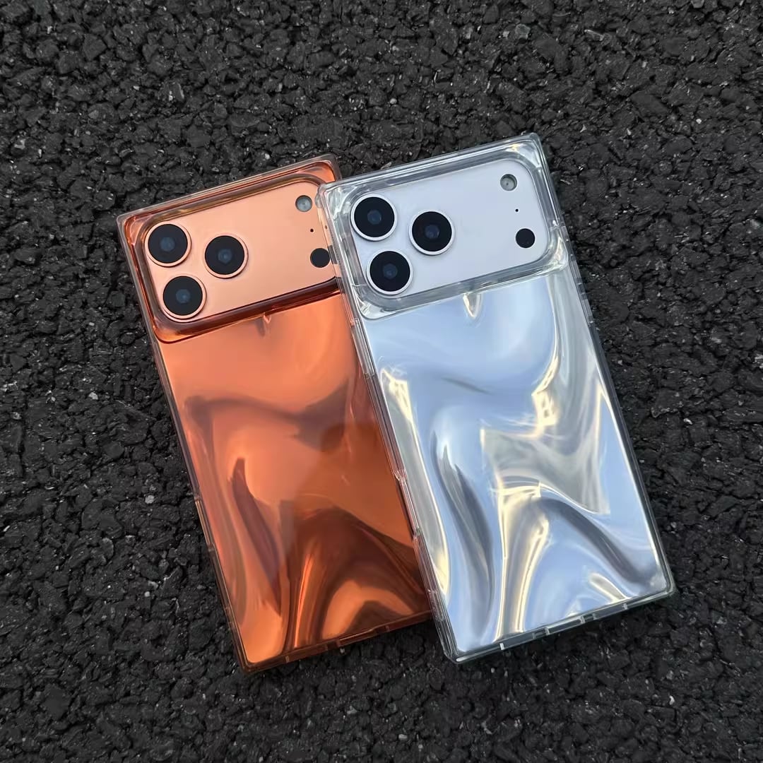 メタリック iPhone17 Pro Maxケース ウェーブ 高級感 iPhone 17カバー アート ニュアンス iPhone16 Proケース 光沢 フラット表面 アイフォン15ケース シンプル 大人 スマホケース iPhone14Pro 13ケース おしゃれ 韓国風 個性 洗練 耐衝撃◎