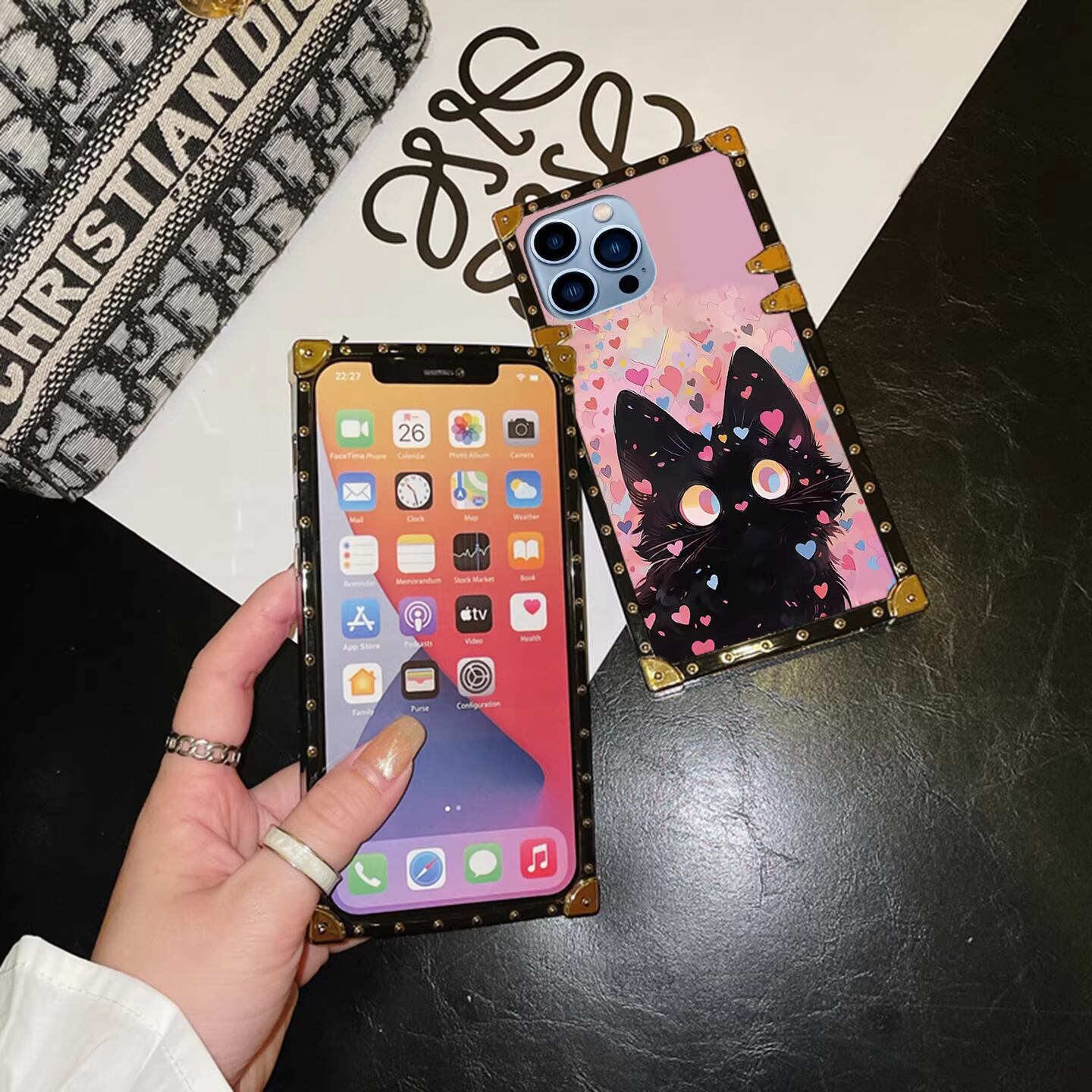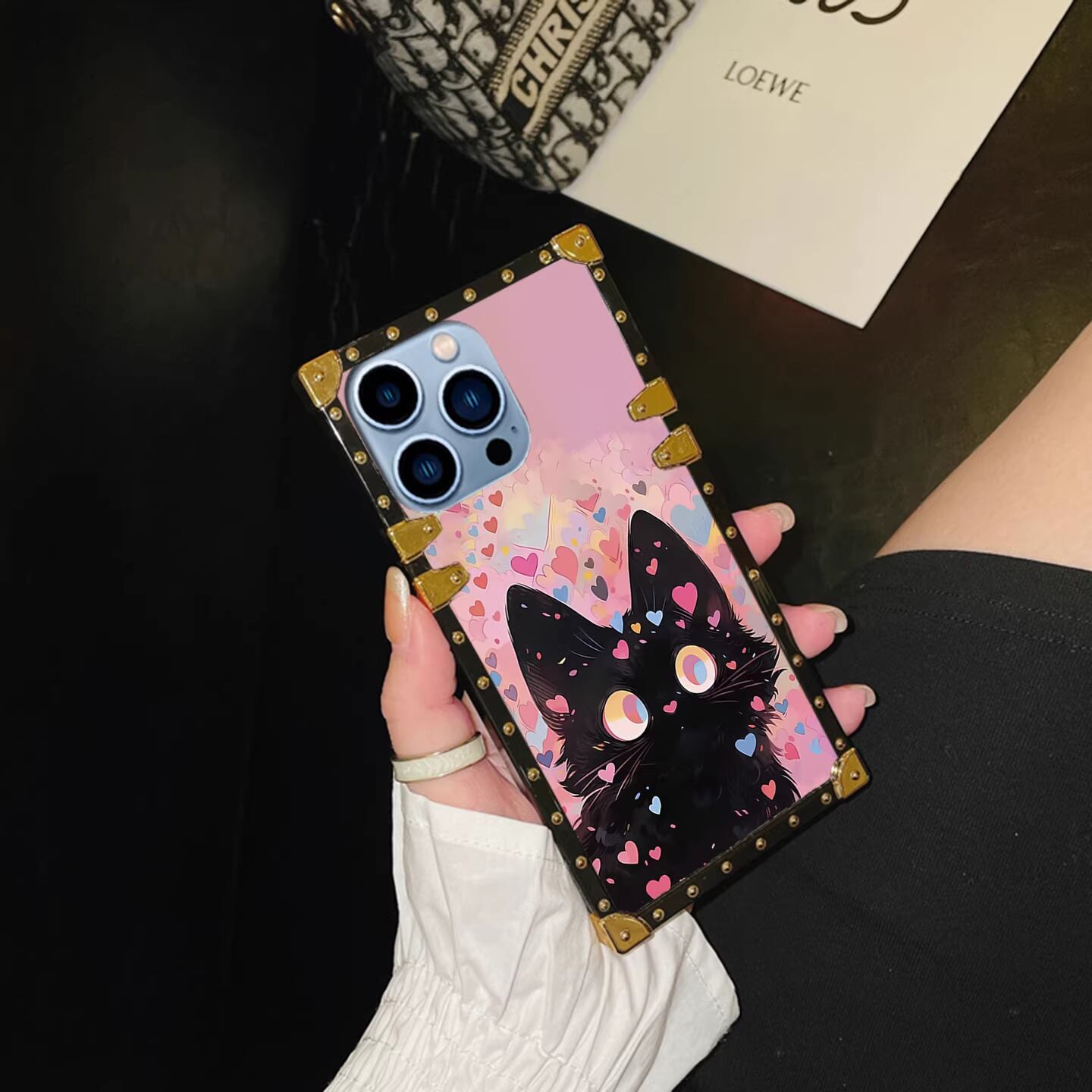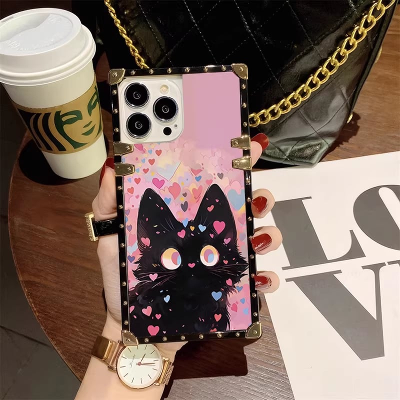 トランク風 iPhone17 Pro Maxケース 黒猫 ハート iPhone Airカバー ネコ キャット iPhone16 Proケース スクエア型 四角 アイフォン15ケース ハート クラシック レトロ iPhone14Pro 13ケース 背面保護 衝撃吸収 個性的 大人可愛い 韓国 人気 トレンド 華やか ゴールド