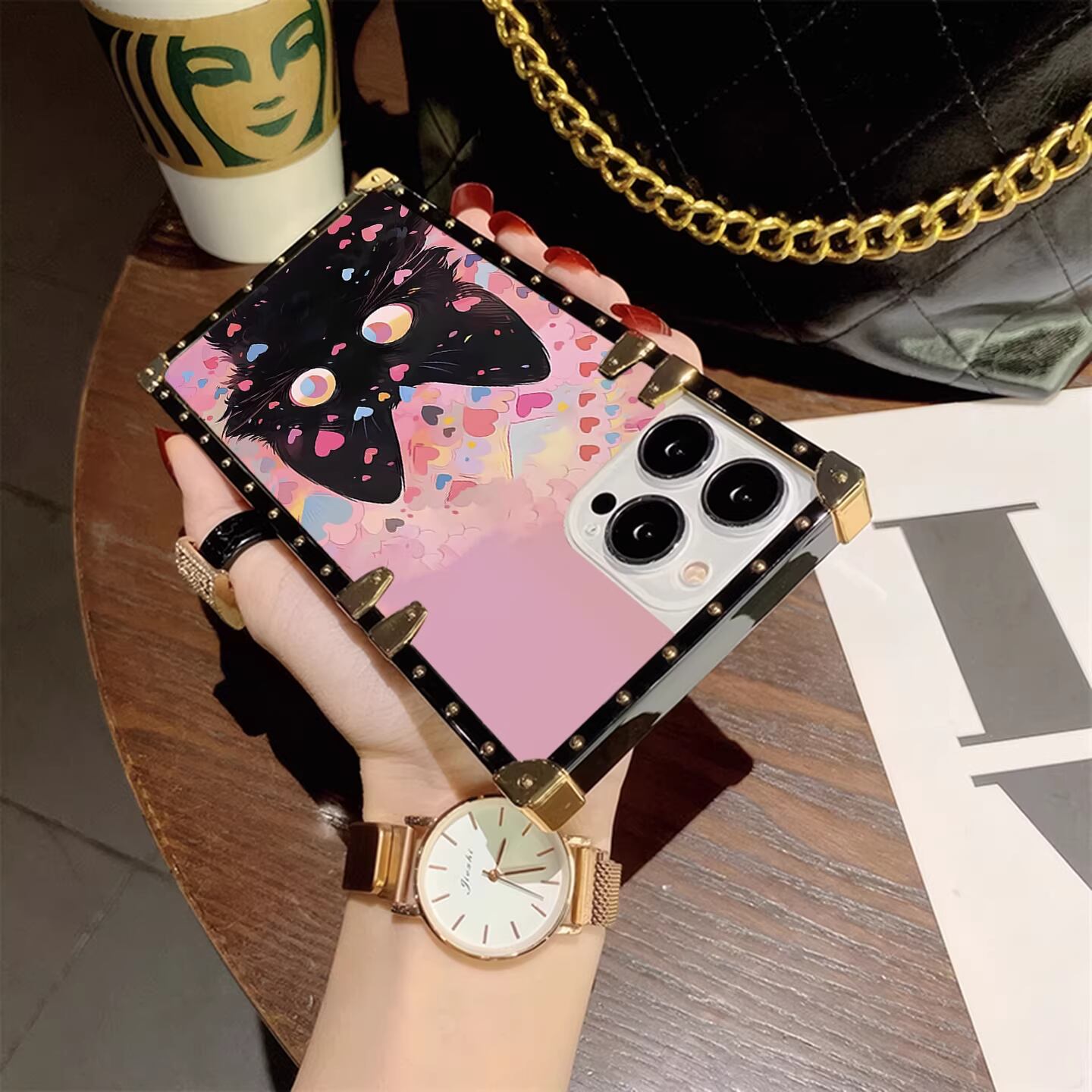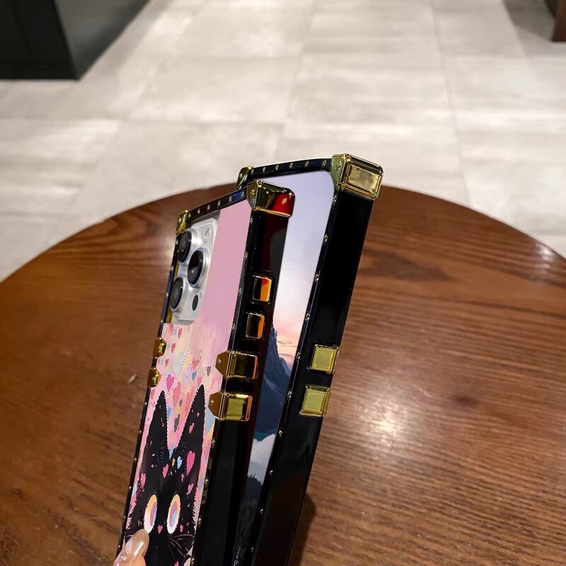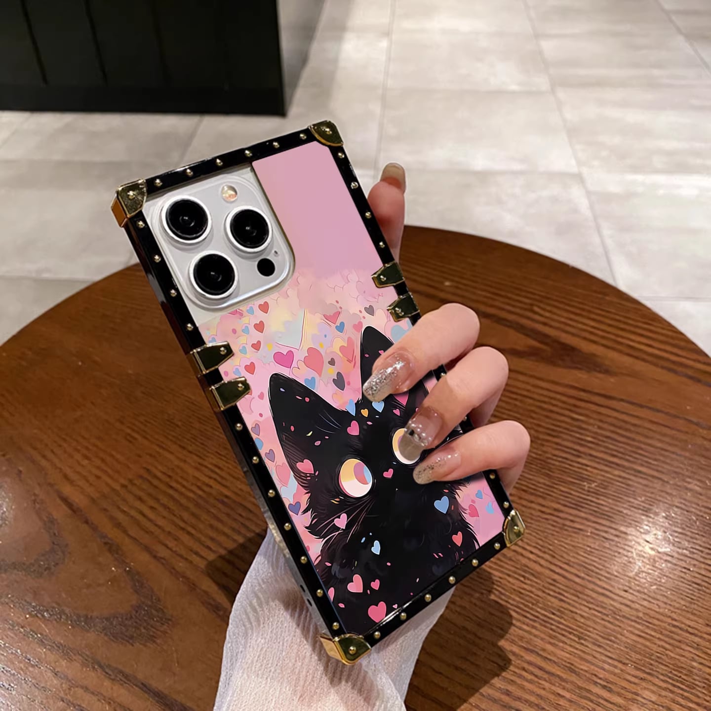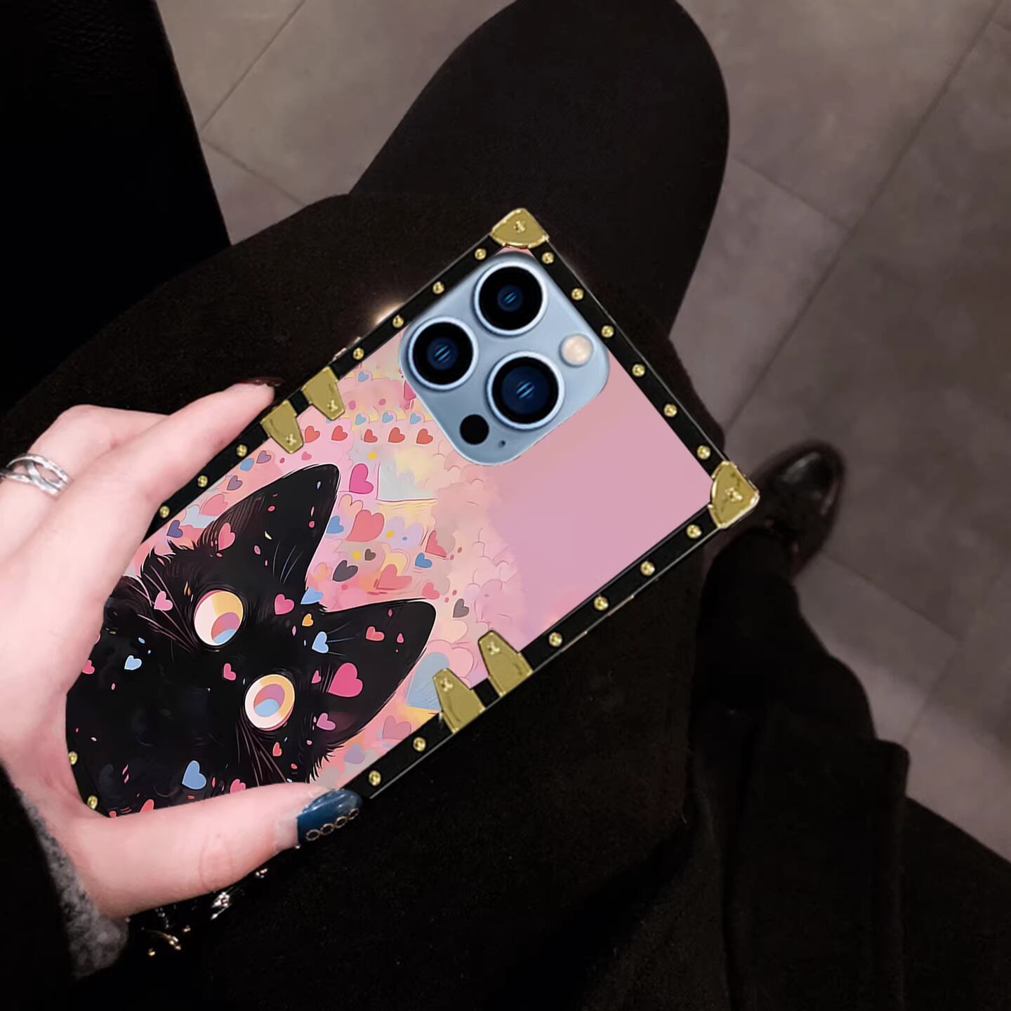 トランク風 iPhone17 Pro Maxケース 黒猫 ハート iPhone Airカバー ネコ キャット iPhone16 Proケース スクエア型 四角 アイフォン15ケース ハート クラシック レトロ iPhone14Pro 13ケース 背面保護 衝撃吸収 個性的 大人可愛い 韓国 人気 トレンド 華やか ゴールド