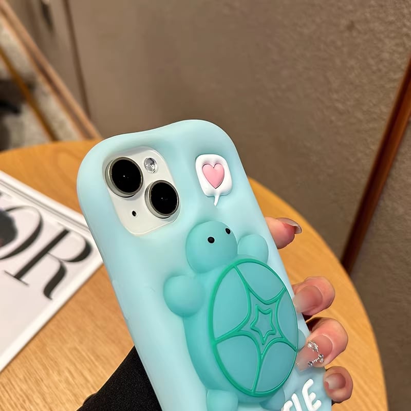 背面にぷっくりとした大きなカメさんが乗った、インパクト抜群のiPhoneケースです。