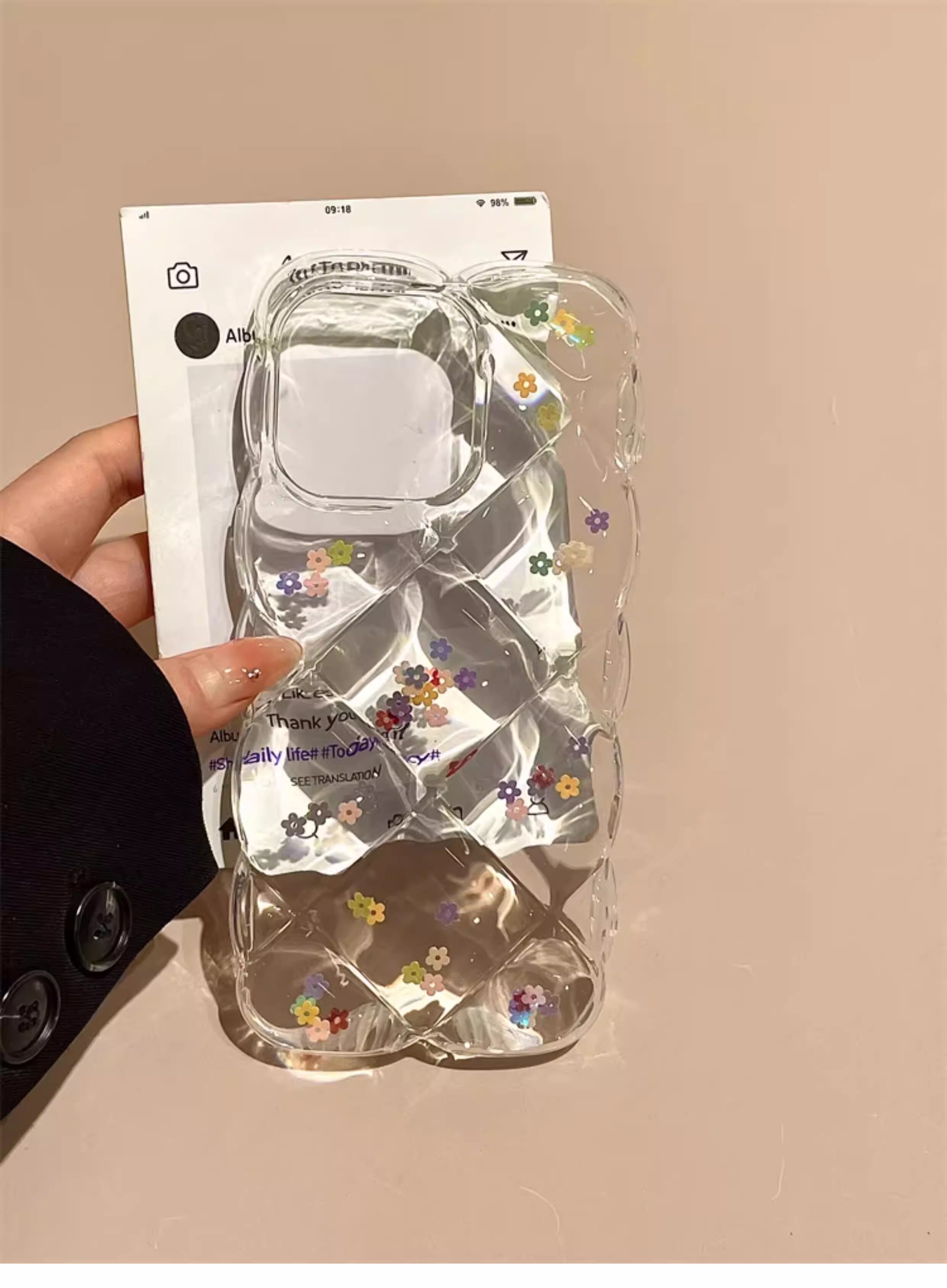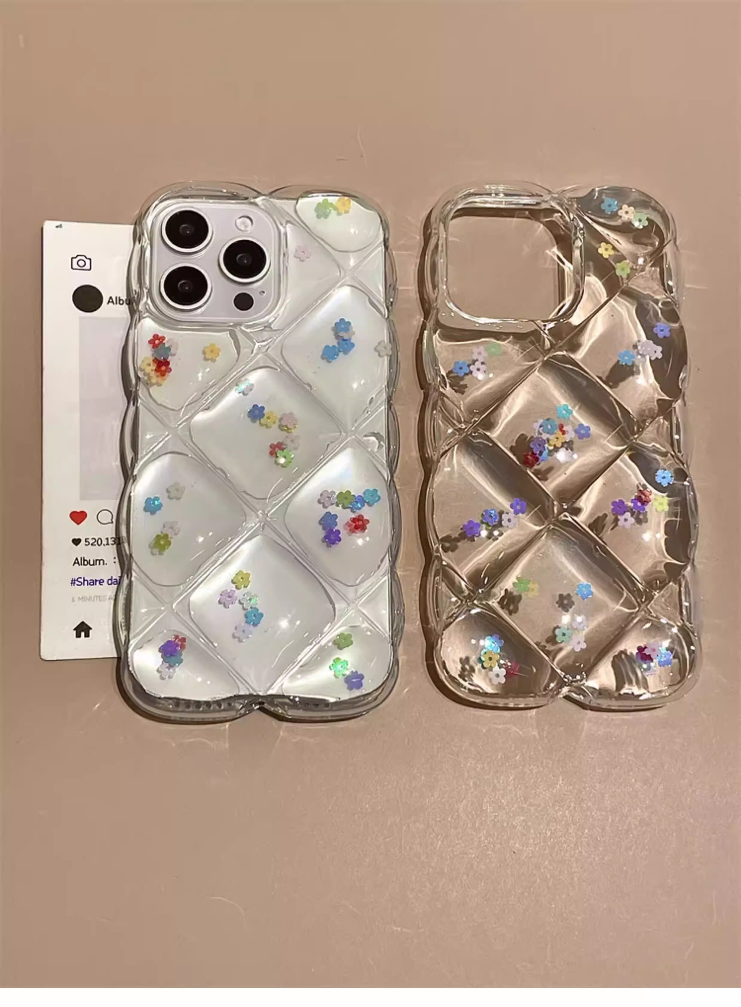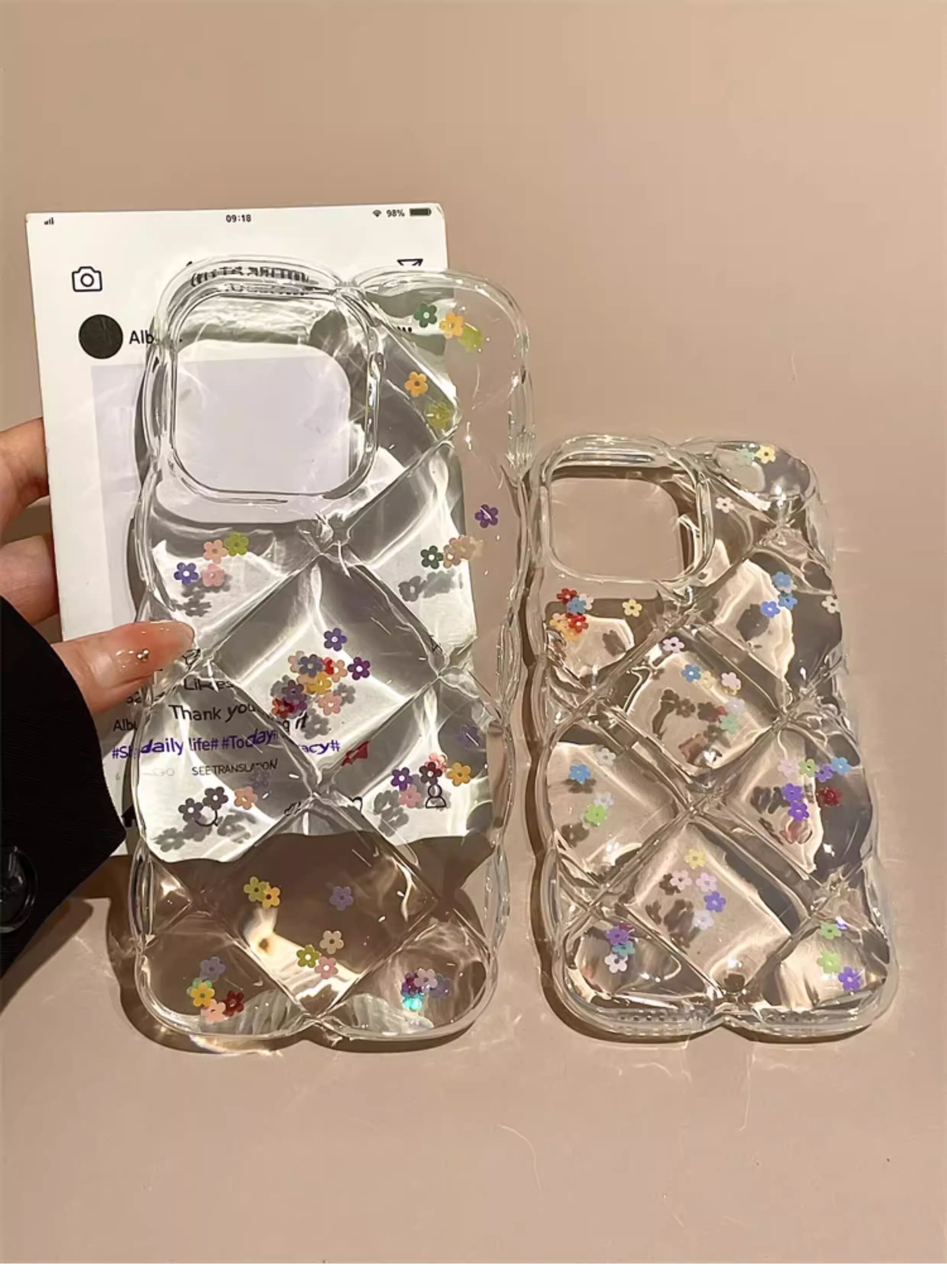 ぷっくり iPhone17 Pro Maxケース 3D 立体フォルム iPhone17 Proカバー キルティング調 クリア iPhone16 Proケース 透明 小花柄 アイフォン15ケース フラワー 埋め込み iPhone14Pro 13ケース 大人可愛い 上品 きれいめ ゆめかわ★