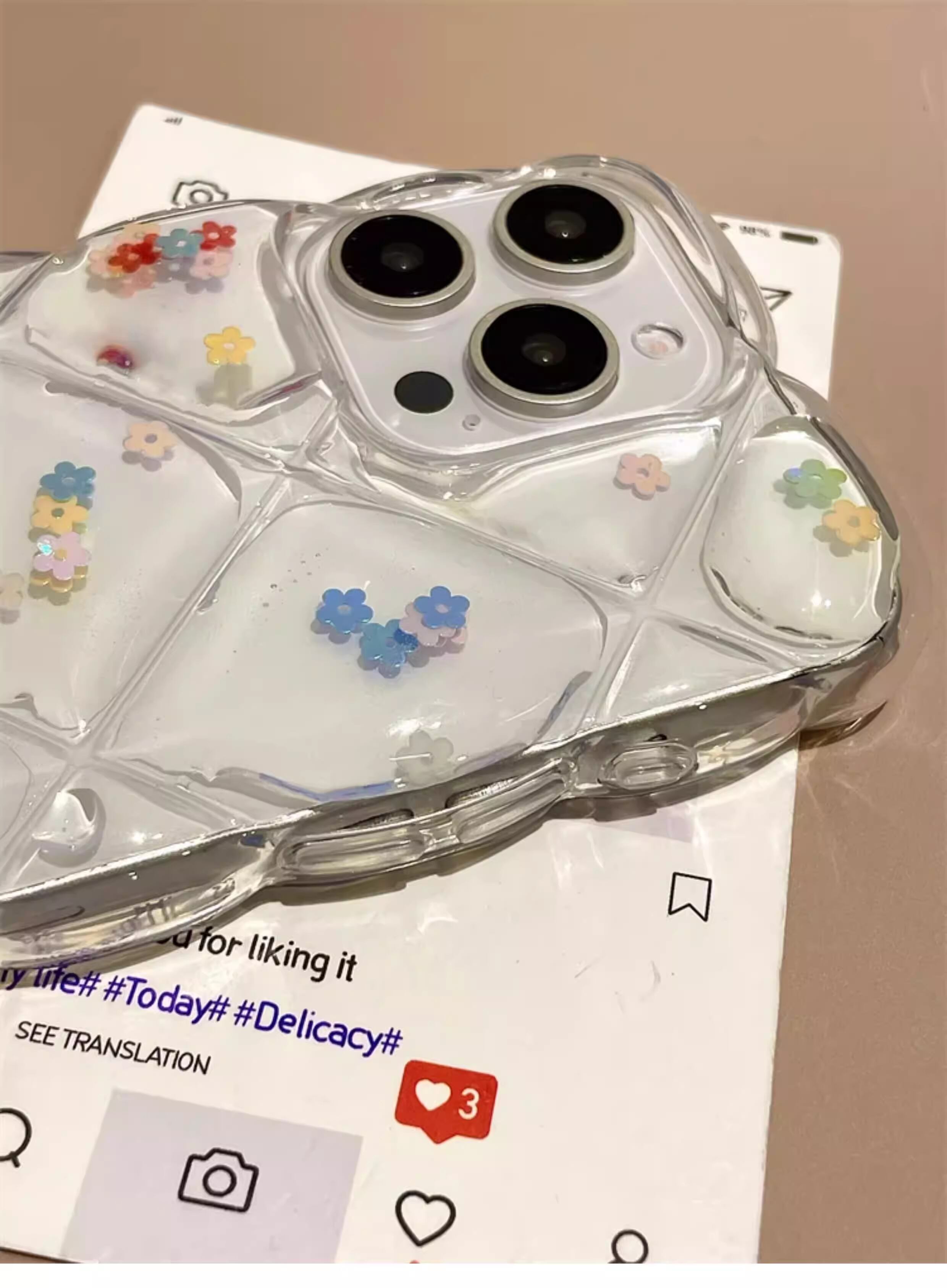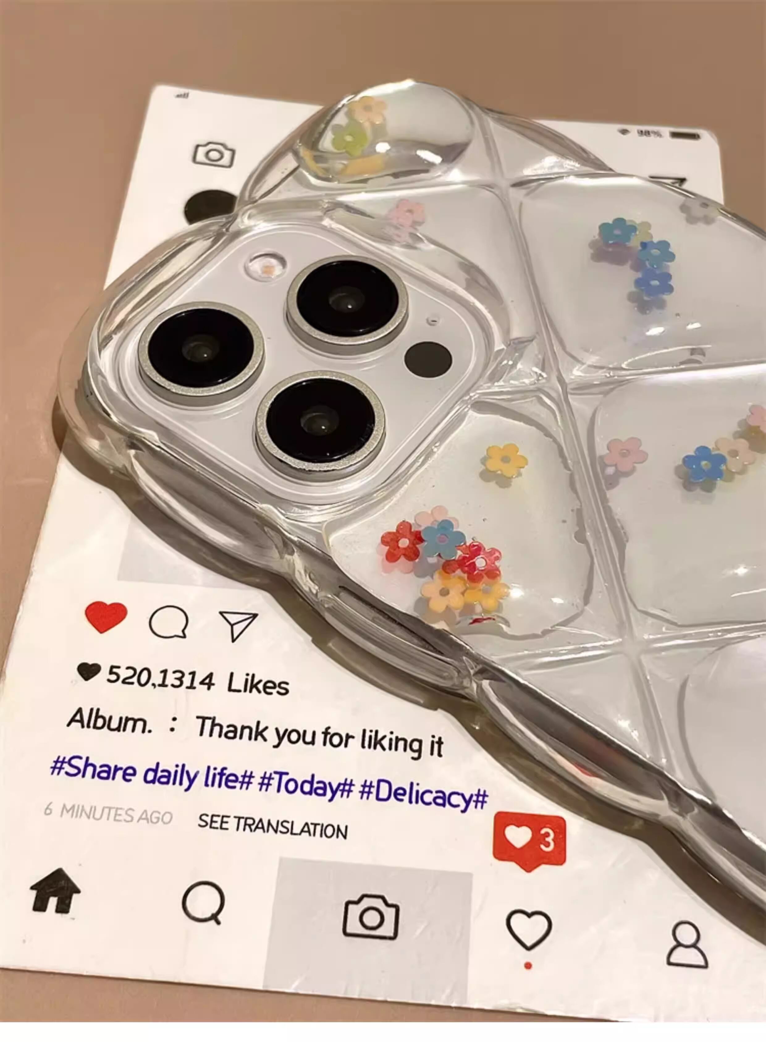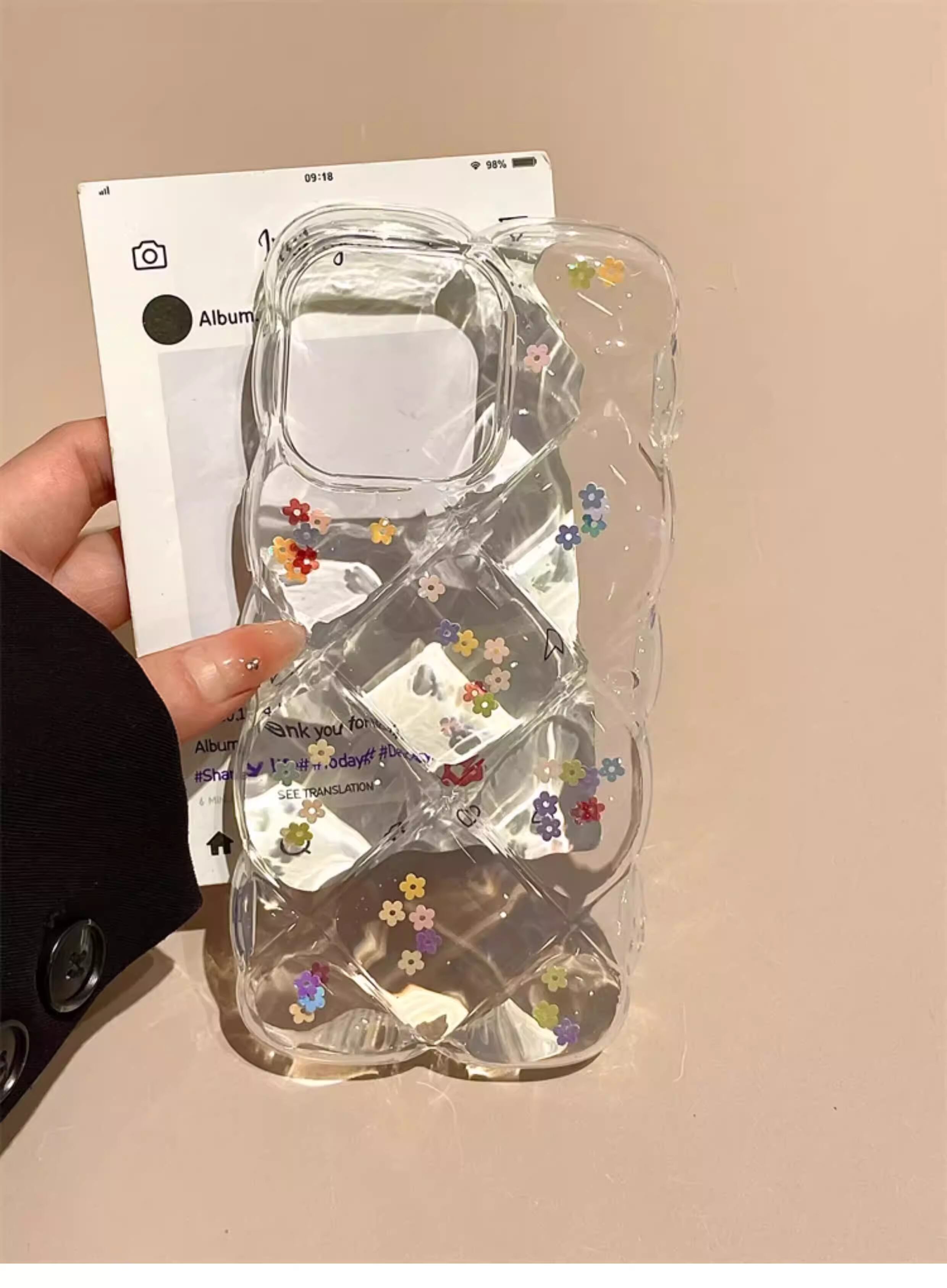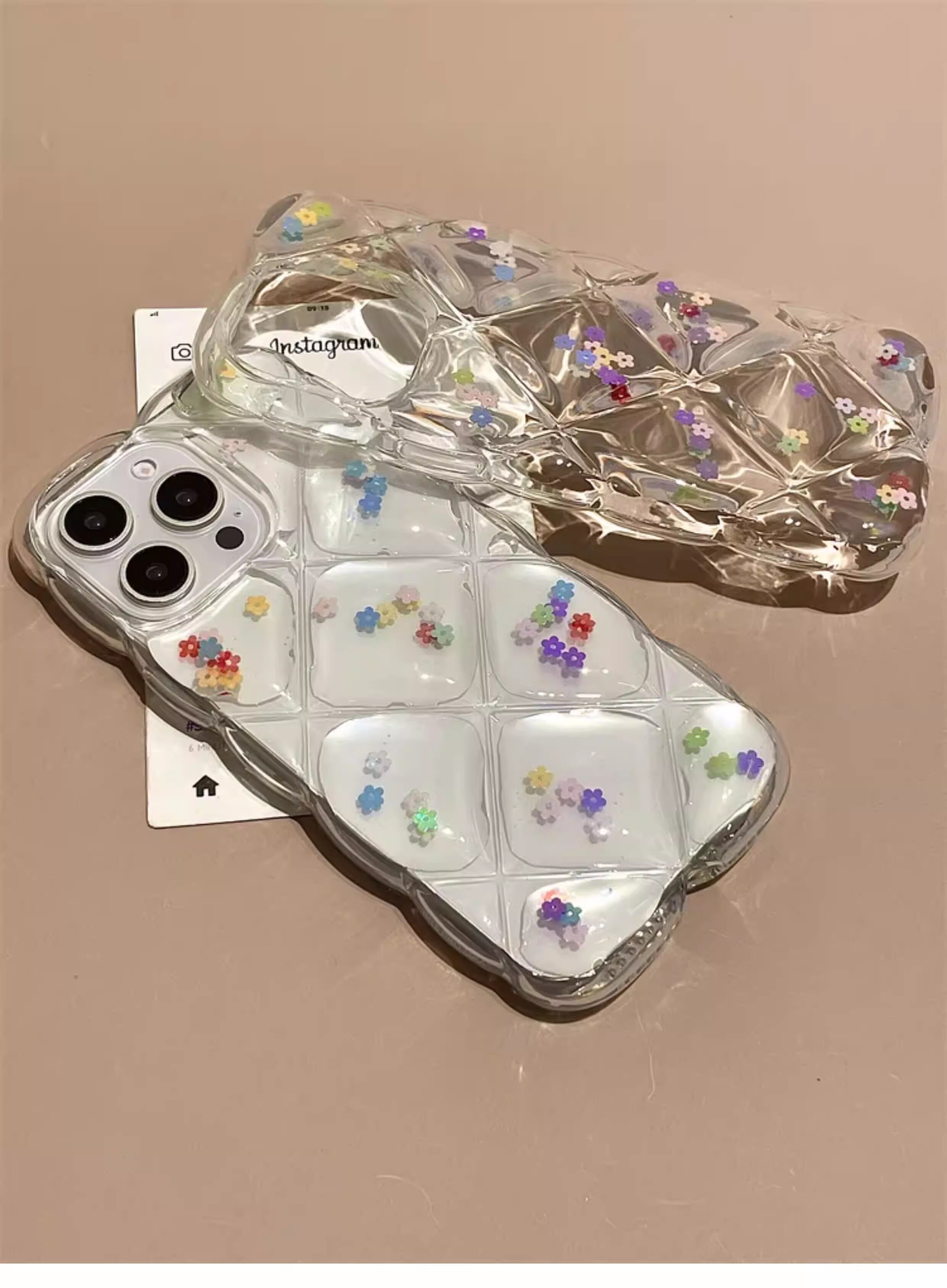 ぷっくり iPhone17 Pro Maxケース 3D 立体フォルム iPhone17 Proカバー キルティング調 クリア iPhone16 Proケース 透明 小花柄 アイフォン15ケース フラワー 埋め込み iPhone14Pro 13ケース 大人可愛い 上品 きれいめ ゆめかわ★