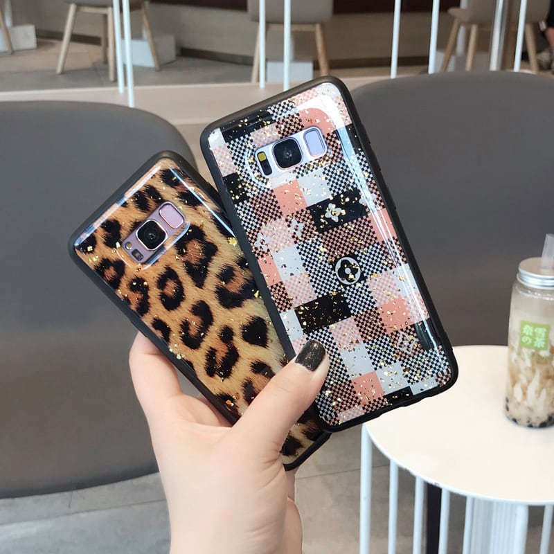 キラキラなGalaxy S10/S10+/S10eケース チャック ヒョウ柄 iPhone7/8plus/X/Xsmaxケース 金箔入り 高級感 日本未発売♪