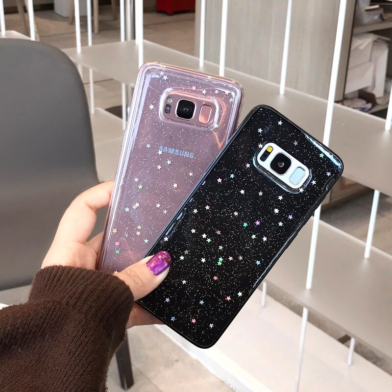 星✩Galaxy S10ケース キラキラなgalaxy S10+/S10e/S9plus/Note9/S8/S7 edgeケース TPU素材 ソフト クリアx黒 超可愛い おすすめ