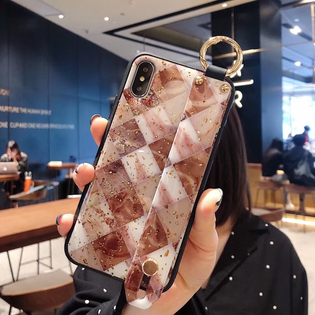 大理石柄 iPhoneケース 金箔 キラキラ アイフォン xs/xr/xsmax/8/8plus/7/7plus/6s/6splusケース お手持ちベルト付き おしゃれ 全2色 レディースファッション♥