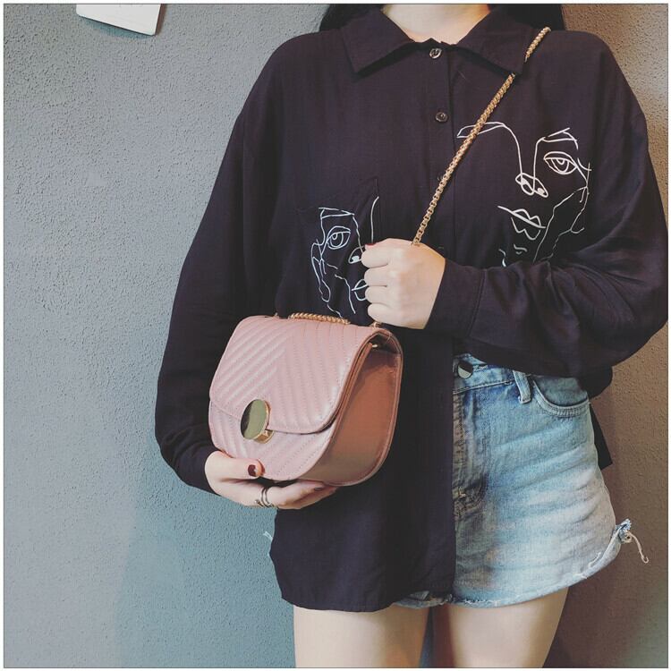 ゴールドの金具が目を引く、セミサークルポシェット ショルダーバッグです 。