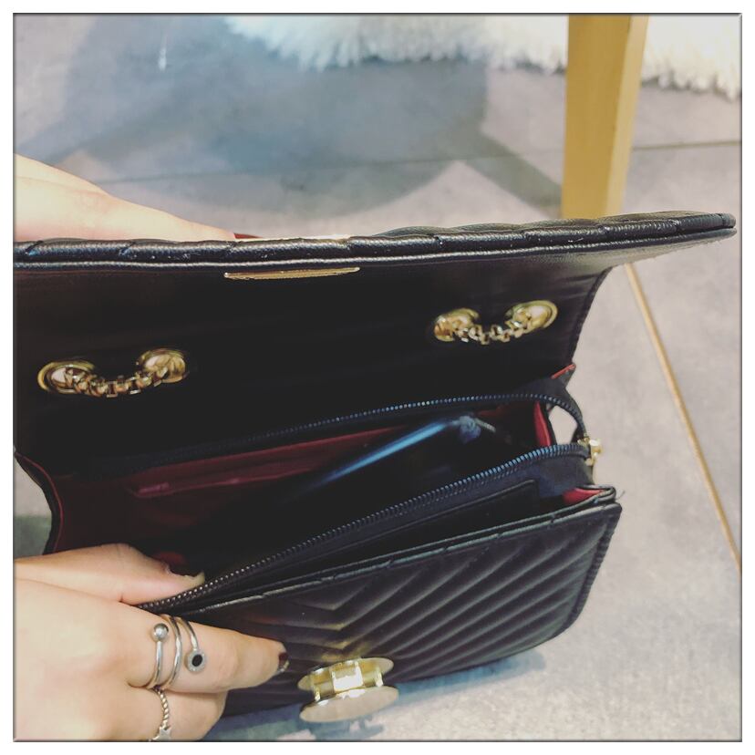 折りたたみ財布、ハンカチ、ティッシュ、リップなど必需品はしっかり収納できます。