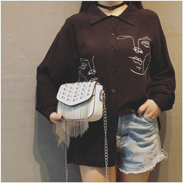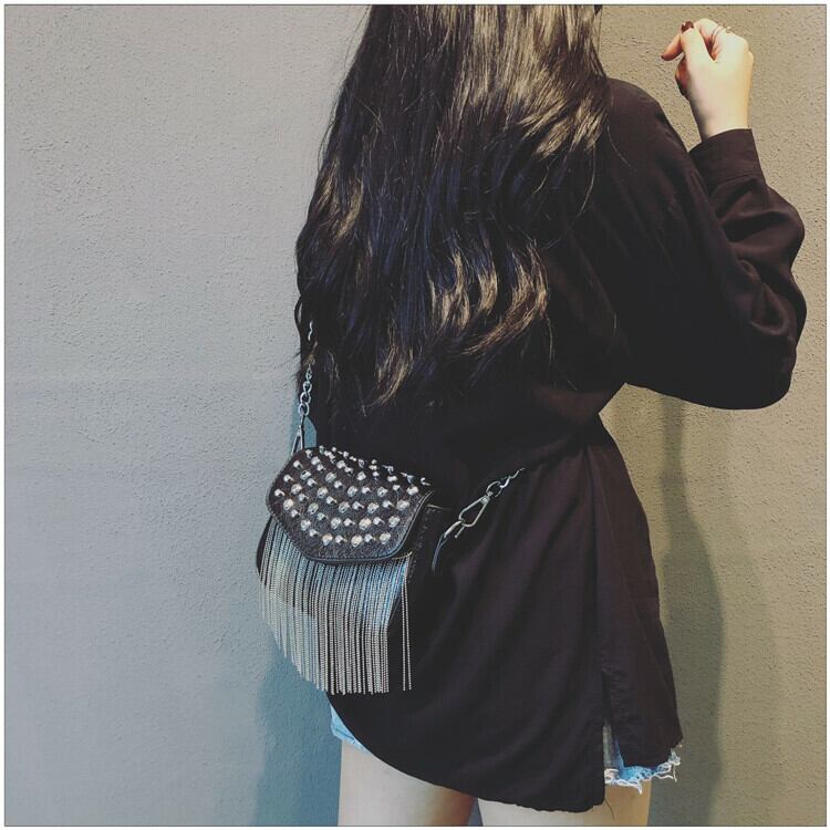 フリンジ付き ミニショルダーバッグ スタッズ付き 白 黒 ショルダーバッグ 肩掛け 斜めがけ 小さめ 鞄 欧米レディース愛用 魅力 おしゃれ 大人気☆