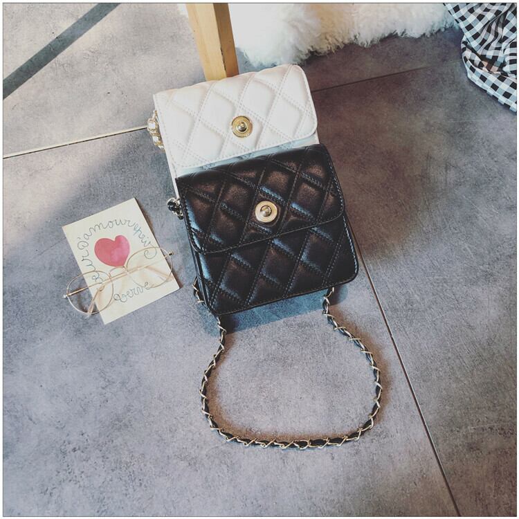 白 黒 ミニショルダーバッグ ゴールドチェーン 留め金具 ショルダーバッグ 小さめ おしゃれ 韓国女子人気定番☆