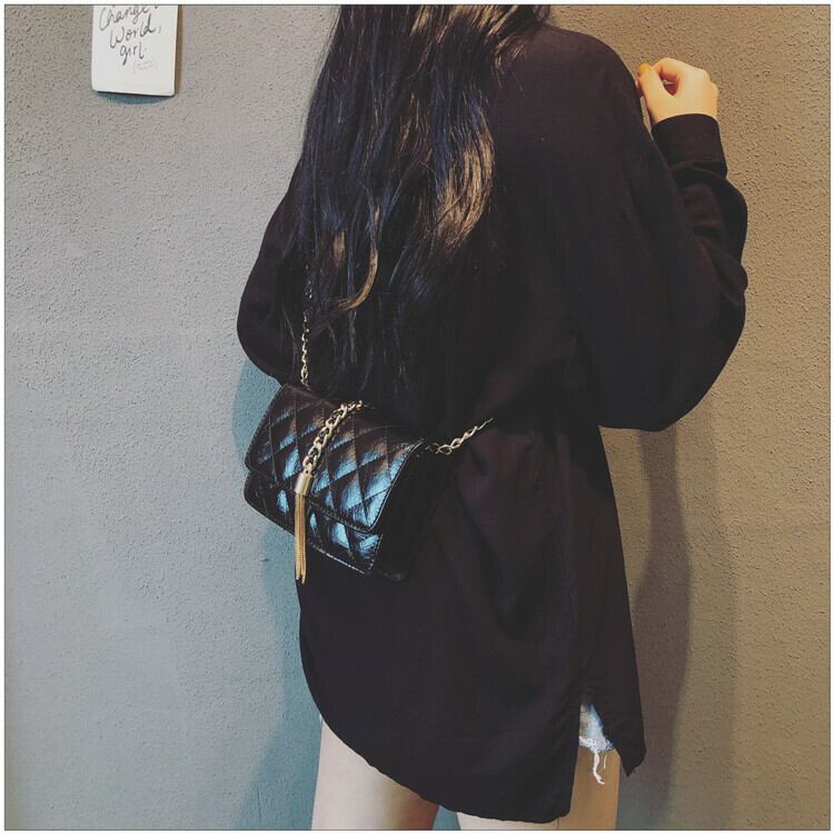 キルティングショルダーバッグ ミニ フリンジ ゴールドチェーン付き シック 高級 黒 大人 レディースファッション 人気商品☆