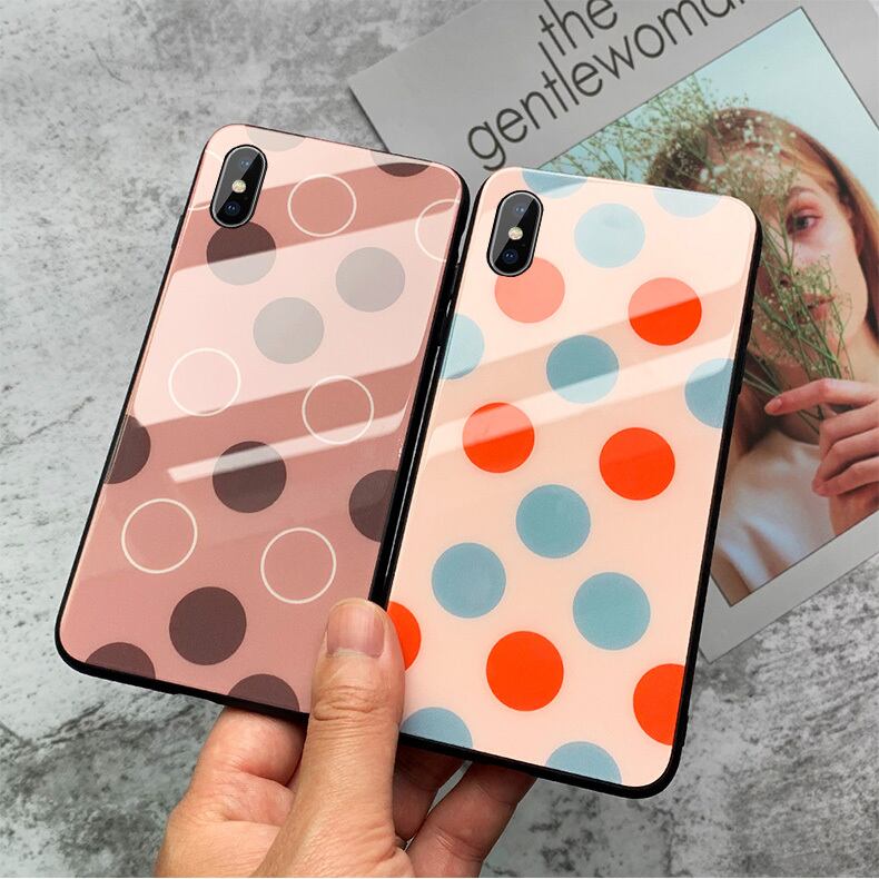 ドット柄 iPhone11 Pro/11/xs/xr/8/7plusケース ハートデザイン Galaxy S10/S10 Plus/Note9/S9/S9+ 保護カバー カラフル 衝撃 強化ガラスケース レディース 全4色 おすすめ