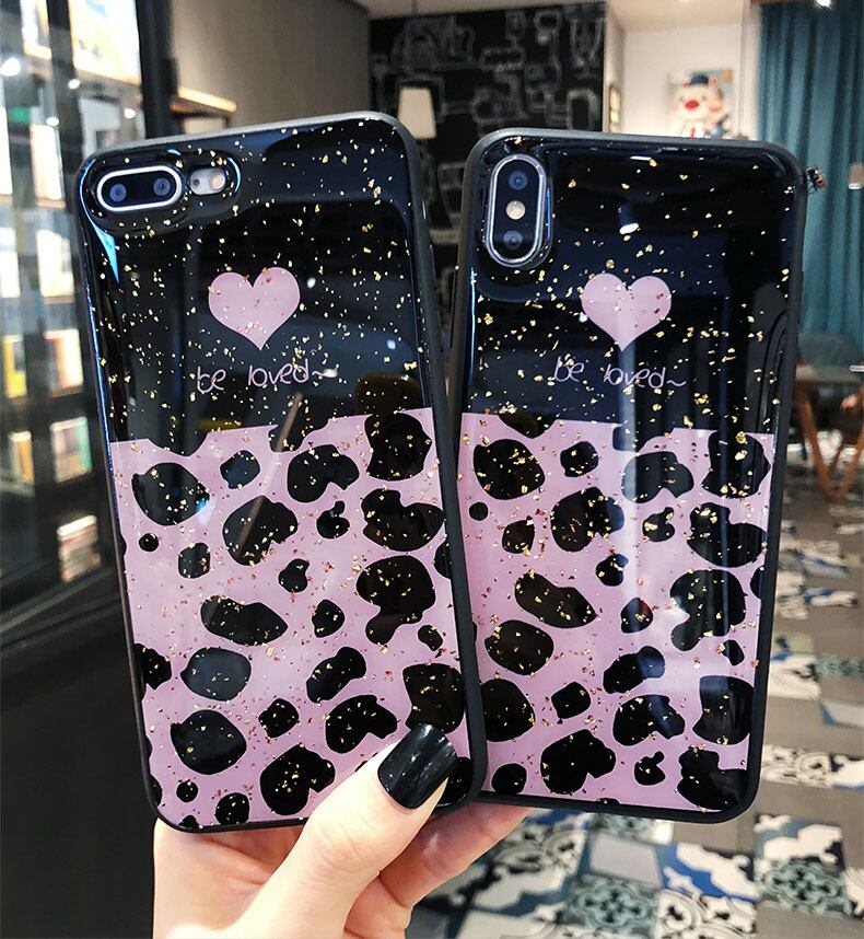 金箔入り iPhonexsケース キラキラ iPhonexrカバー ヒョウ柄 iphone8 8plus 7 7plus 6s 6splus 保護カバー ミニハートデザイン 「Be Lovedシリーズ」人気新品