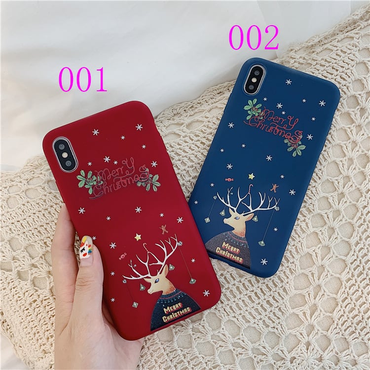 クリスマス気分 iPhone11Proケース ペア用 iPhoneXSケース レッド ネービー iPhone xr 8plus 保護カバー プレゼント♪