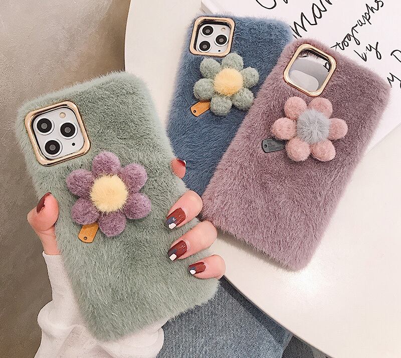 花柄 iPhone11 Proケース ふわふわ iPhone11ケース 可愛い iPhoneXS XR 8 8Plus 7 7Plus カバー 冬用 3カラー お洒落