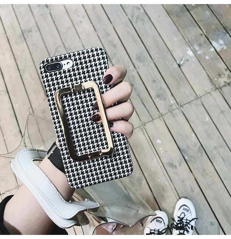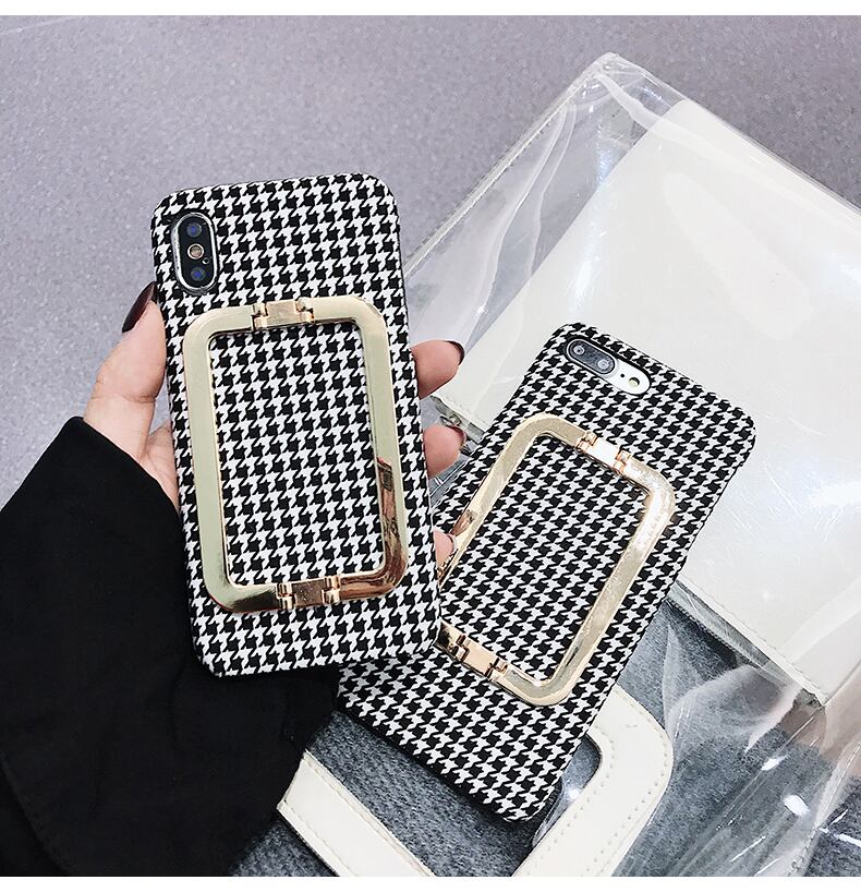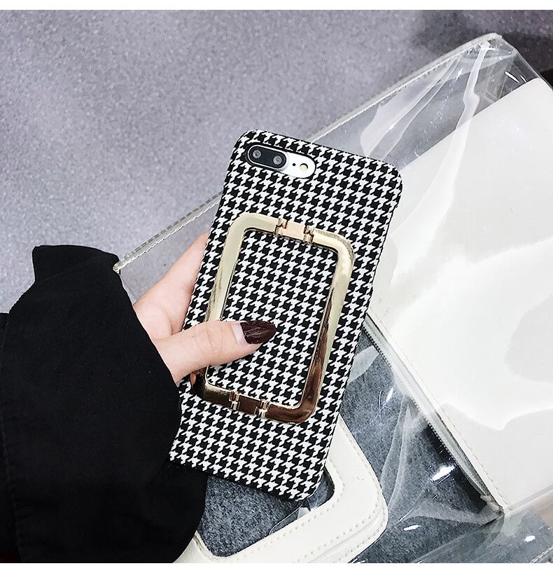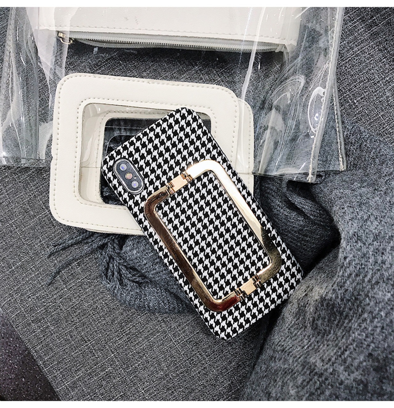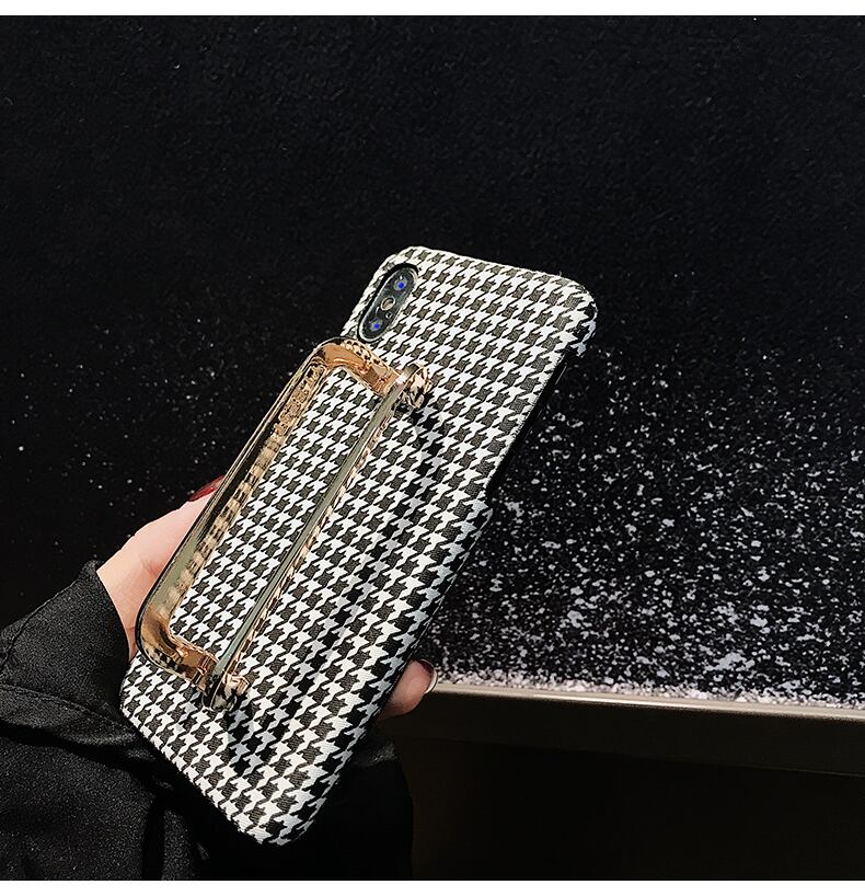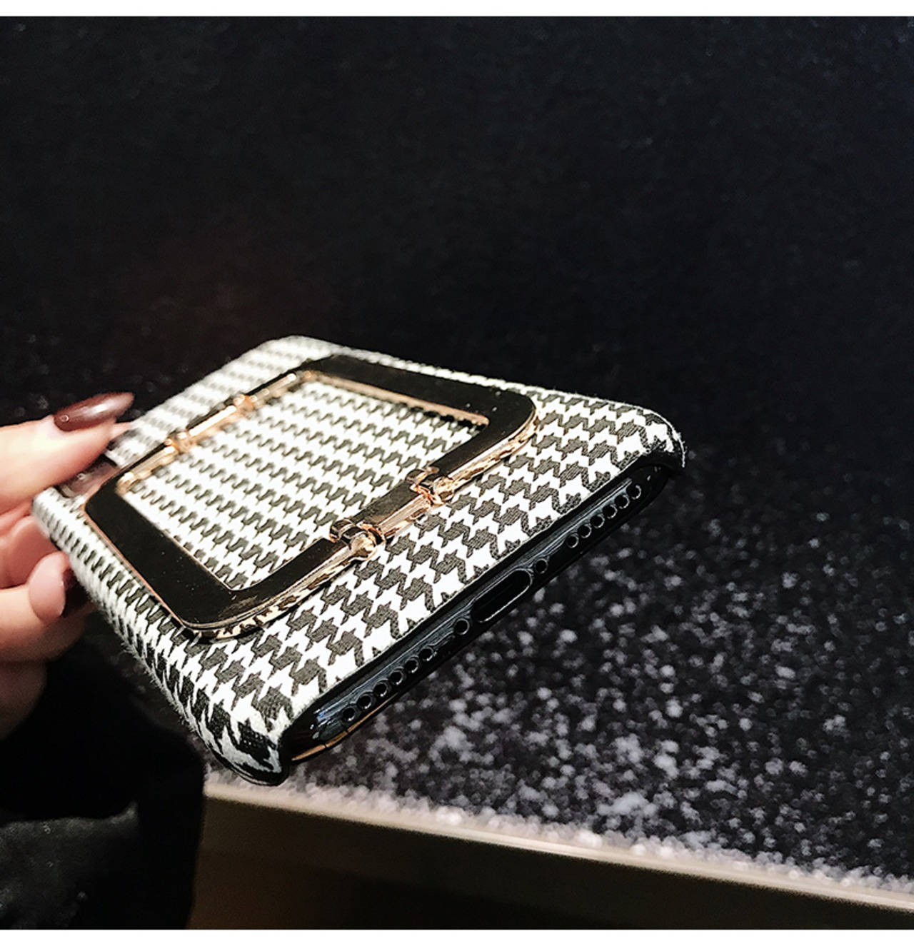 千鳥格子 iPhoneXSケース 黒x白 iPhone11 Proケース 大人 iPhone11 iPhonexr iPhone8 iPhone7Plusケース 金属ベルト付き シック お洒落☆日本未発売