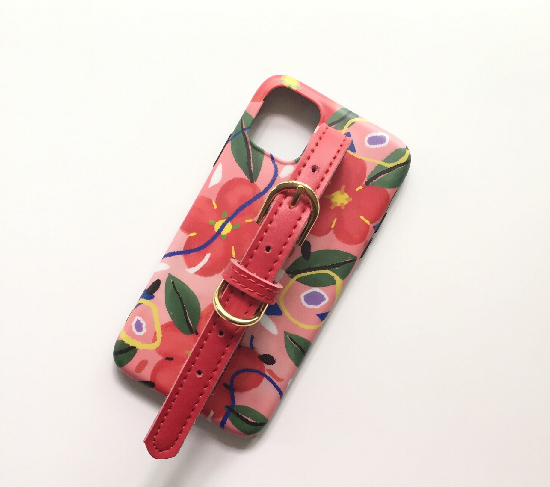 レッド系 花柄 iPhoen11 Proケース レザーベルト付き iPhone11ケース 大人 iPhone XS XR 8 8Plus 7 7Plus 保護カバー レディース 魅力的 スマホケース「ハンドメイド」限定