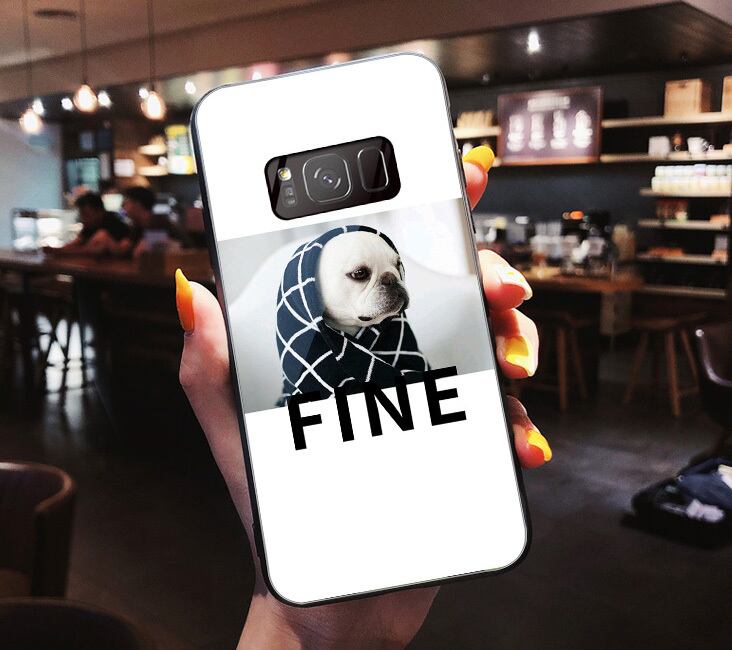 カップル用 Galaxy S10+/S10/S9+/Note9ケース ワンちゃん iPhone11 Pro/11/xs/xr/8/8plus 強化ガラスケース ”FINE”シリーズ 白 シンプル 大人 男女 ペア用 おすすめ☆