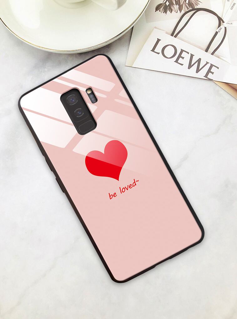 ビッグハート Galaxy S10+/S9+/Note8ケース 強化ガラス "Be Loved"シリーズ iPhone11 Pro/11/xs/xr/8/7Plus 保護カバー 黒 白 ピンク 全3色 お洒落 2020年新品発売