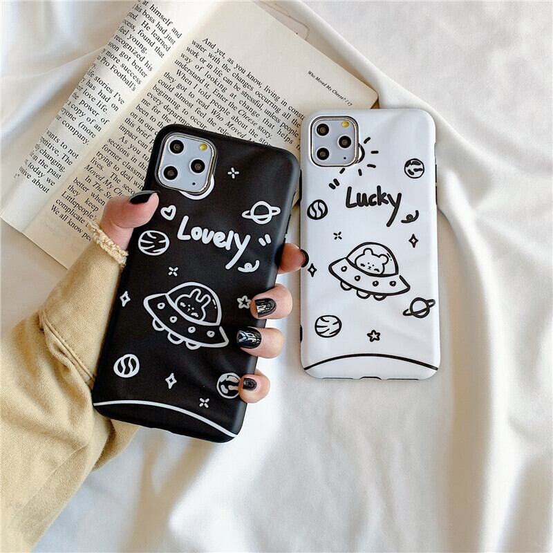 Lovely Lucky iPhone11 Pro iPhone11 iPhoneXS iPhoneXR iPhone8 保護カバー 黒 白 ”UFO”図案 シンプル 新品発売