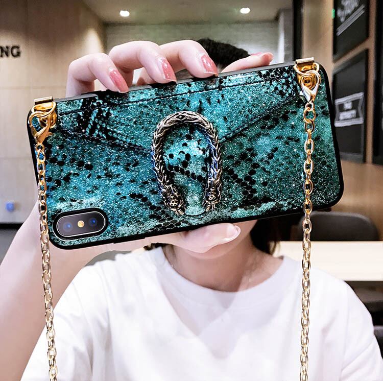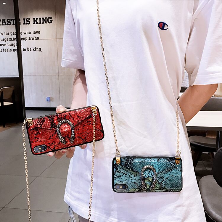 上品☆ヘビ柄 iPhoneXSケース ショルダー チェーン付き iPhone11 Proケース カード収納 iPhone11 XR 8 8Plus 7 7Plus 保護カバー レザー製 セレブの定番☆限定