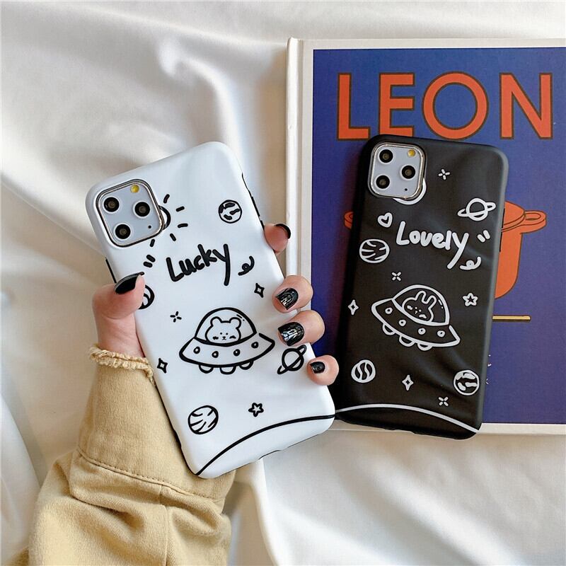 白x黒 UFO図案 iPhone11 Proケース 可愛い iPhone11ケース ソフト iPhoneXSケース 超軽量 iPhoneXRカバー "Lucky"&”Lovely” iPhone8 8Plus 7 7Plus保護カバー 新品♡