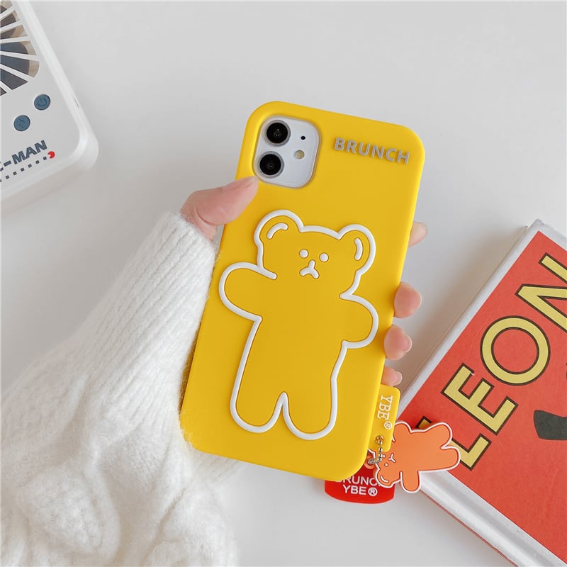 韓国「ROMANE(ロマネ)」のiPhoneケース チャーム付き iPhone11ケース チャーム付き iPhone11 Proケース クマさん iPhoneXSケース シリコン iPhoneXRカバー 立体的 iPhone 8/8Plus/7/7Plusケース 可愛い 女子 男子 ペアグッズ 4カラー 人気商品