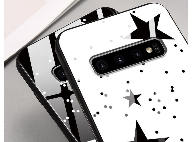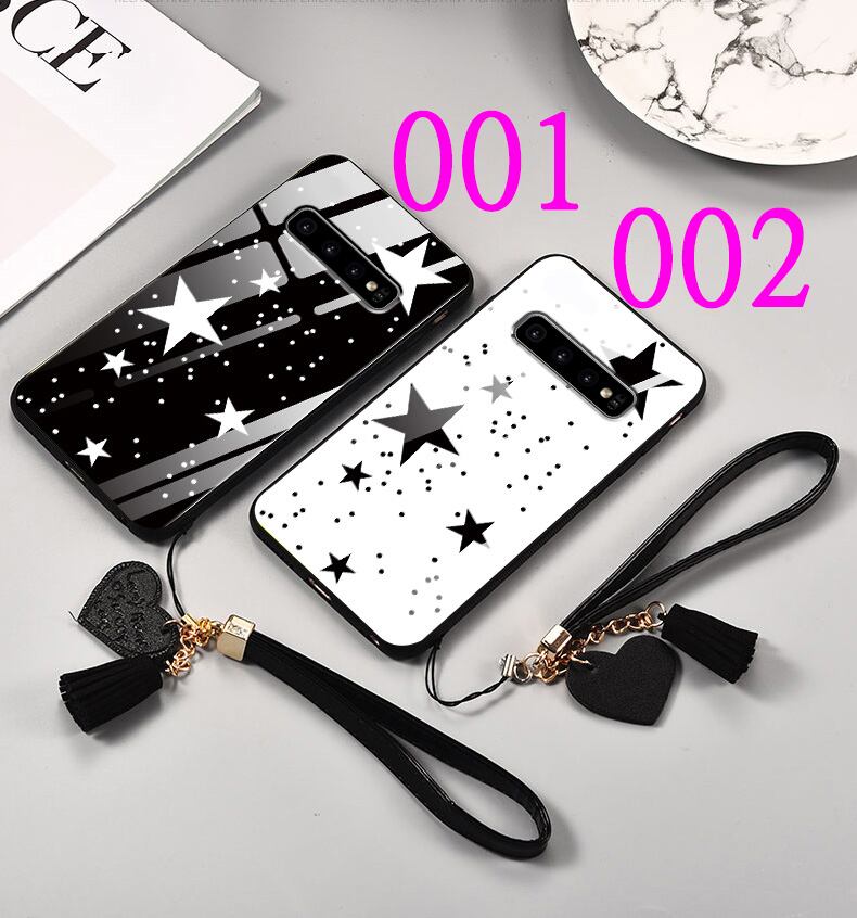 星柄 Galaxy S10+ケース 白 黒 iPhone11 Proケース 強化ガラス Galaxy S20+/S20/S10/S9+ケース 可愛い iPhone11/XS/XR/8Plus保護カバー 女子 スタイリッシュ 親友とお揃い 人気スマホケース♪