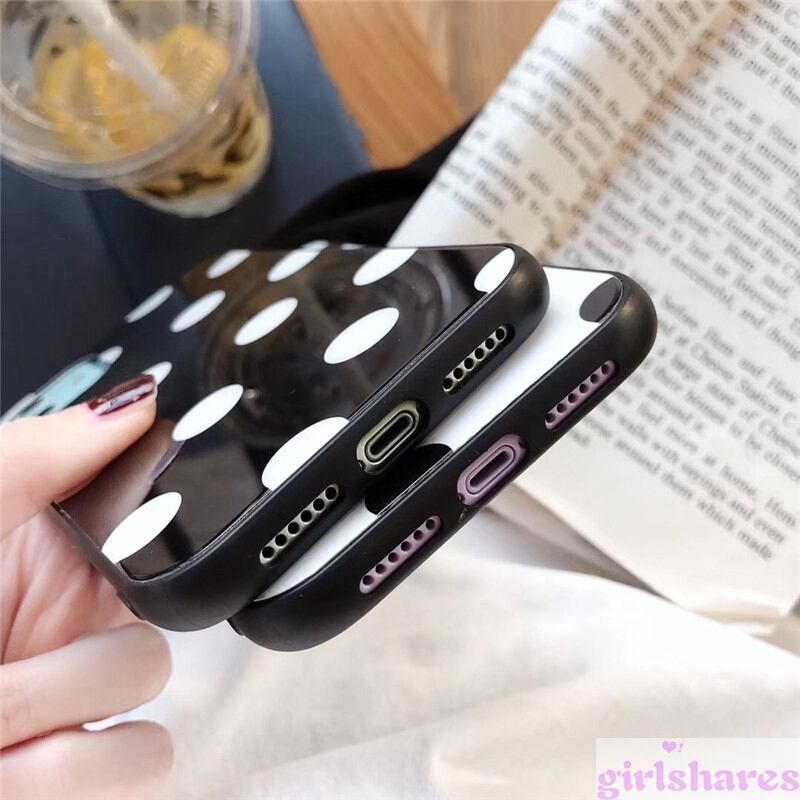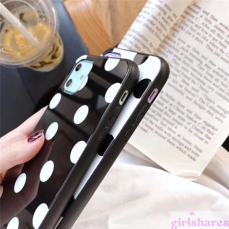 ポルカドット柄 iPhone11ケース 白 黒 iPhone11 Proケース 可愛い iPhoneXS・XR・8・8Plus・7・7Plus保護カバー 強化ガラス レディース 人気定番 お洒落♪