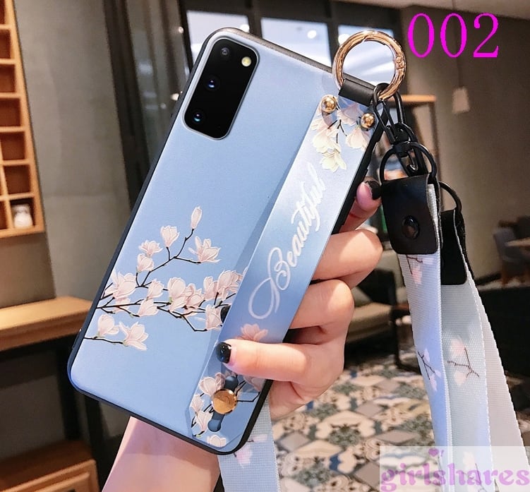 七柄☆植物模様 Galaxy S20 Plusケース ベルト付き Galaxy S20ケース ネックストラップ付き ソフトケース 浮き彫り レディース メンズ 大人 上品 人気商品♪