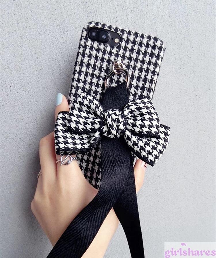 冬の新作☆iPhoneケース・スマホケース ファブリック製☆iPhone11 Pro/11/XS/XR/8/7Plus/6s保護カバー ネックストラップ付き 千鳥格子 大人センス お洒落 レディース プレゼント ギフト♥