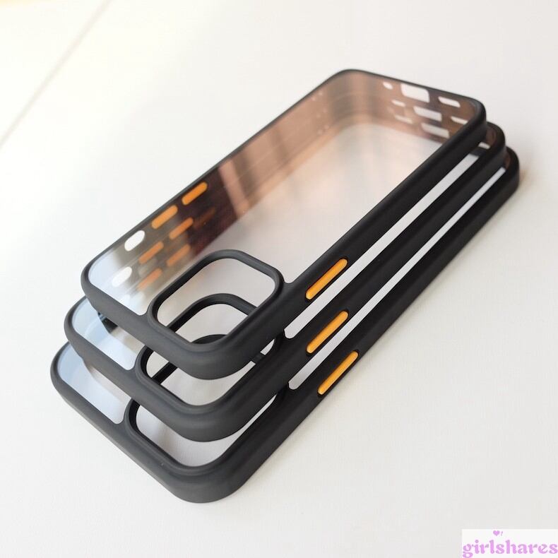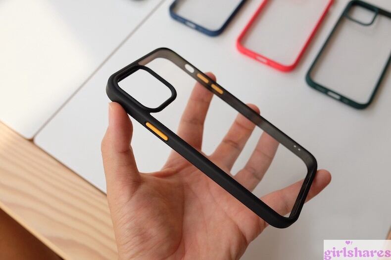 【シンプルなデザイン】背面クリア、カラーボタン、画面以外を全てカバー。おしゃれでシンプルなデザイン。