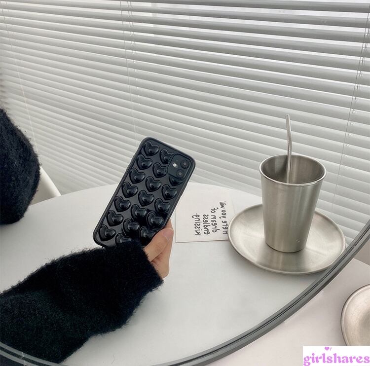 黒 ミニハート iPhone12 Proケース かわいい iPhone12 Miniケース 大人 iPhone11 Pro/11/XS/XR/SE2/8/7Plus保護カバー スタイリッシュ 韓国芸能人愛用 スマホケース 大人気♪