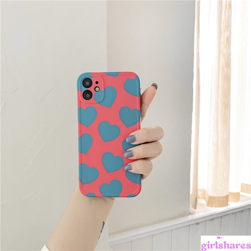 ハートデザイン スマホケース iPhone12 Proケース iPhone11 Proケース iPhoneXSケース iPhone8Plusケース ブルーxピンク かわいい アイフォンケース 女子力UP♡夏の新作♪