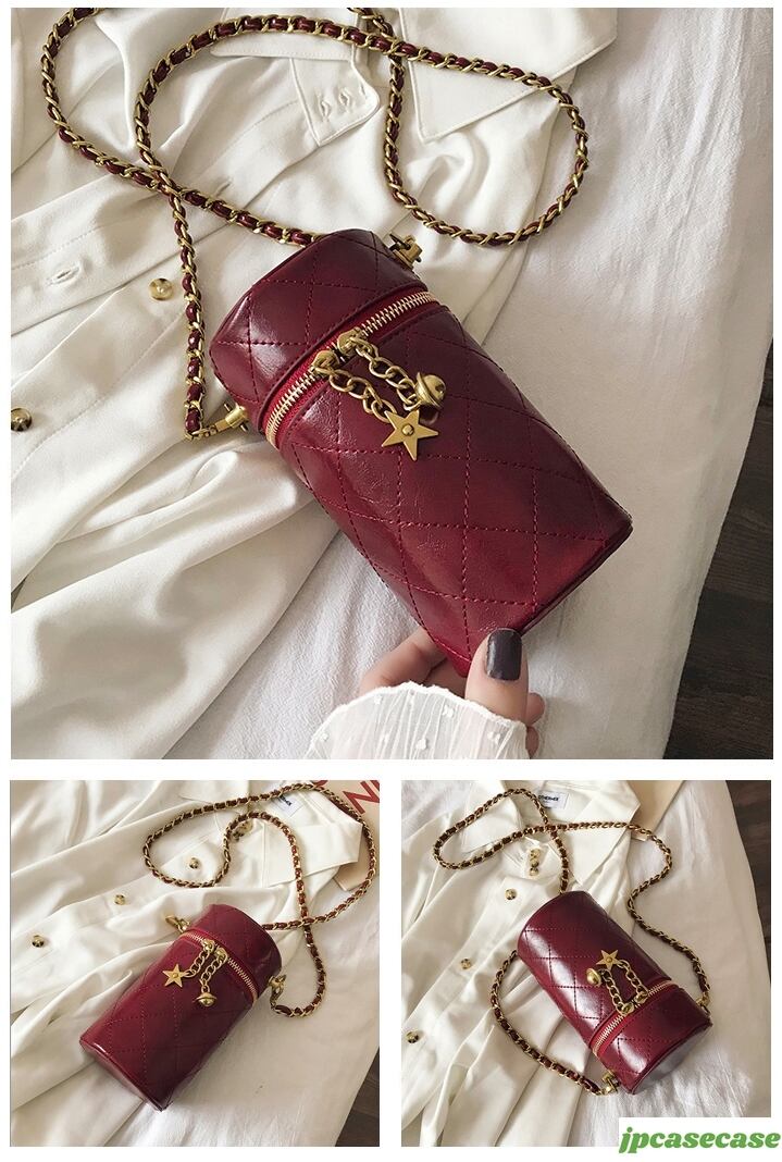 大人かわいい ミニショルダーバッグ お財布ポシェット スマホポーチ 斜めがけ 丸っこい 小さめ ウォレットバッグ バッグ チェーン付き 韓国芸能人愛用 四色 おしゃれ 並行輸入品♪