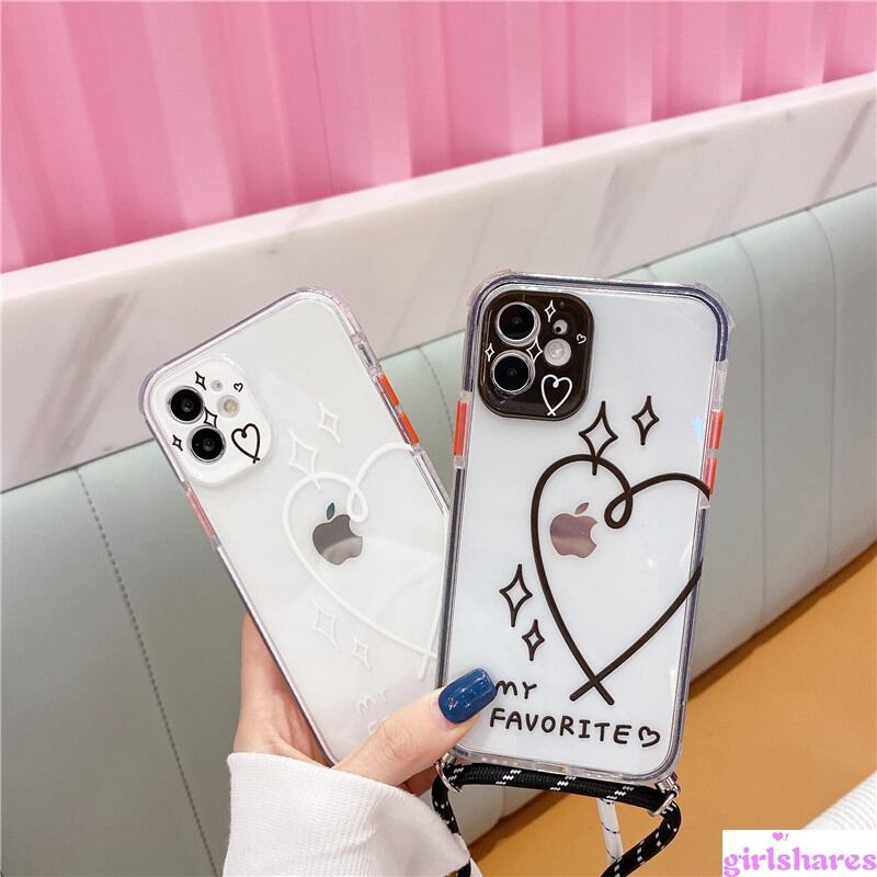 ☆大人かわいい☆ハート iPhoneケース 斜め掛け iPhone 12ProMax~7ケース クリア 携帯カバー スマホケース ソフト 軽量 衝撃 オシャレ ネックストラップ 調整可能 遠足 旅行 デート ショッピング 女子力UP♪