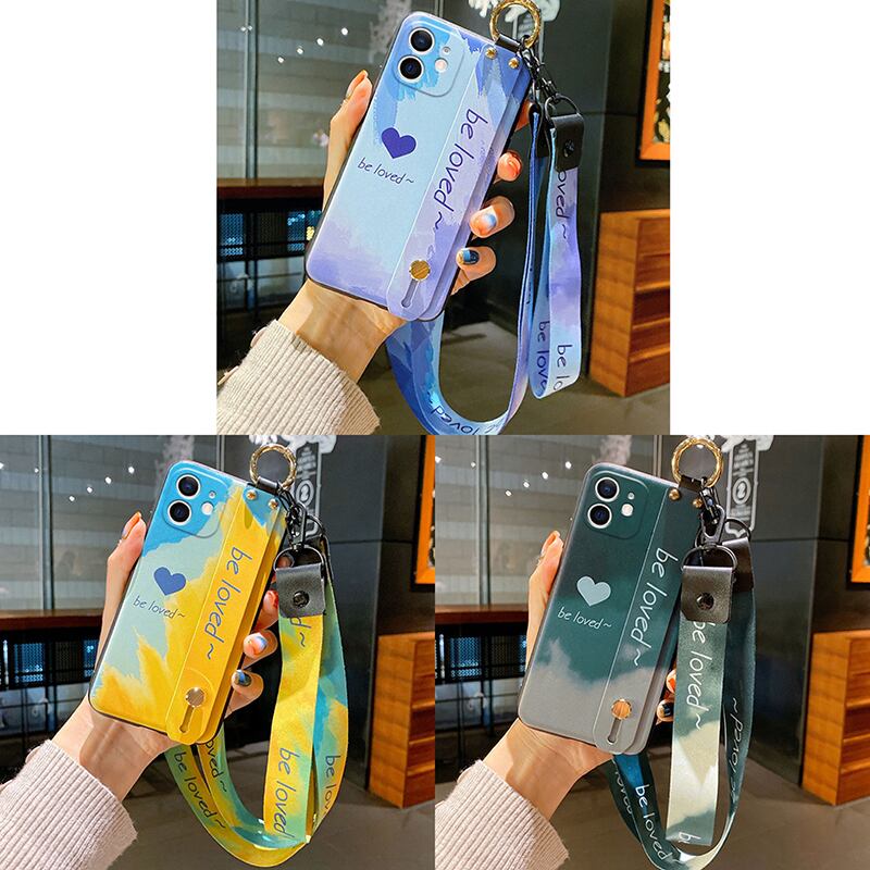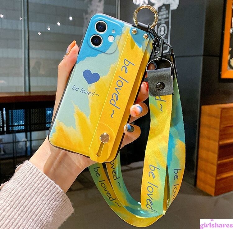 ハート be loved~ 水彩 スマホケース アイフォンケース ベルト ネックストラップ付き 可愛い iPhone 12ProMax 12Pro 12 12mini 11ProMax 11Pro 11 XSMAX XS XR SE2 8 8Plus 7 7Plus保護カバー ソフト 大人かわいい ギフト プレゼント オシャレ 三色♪