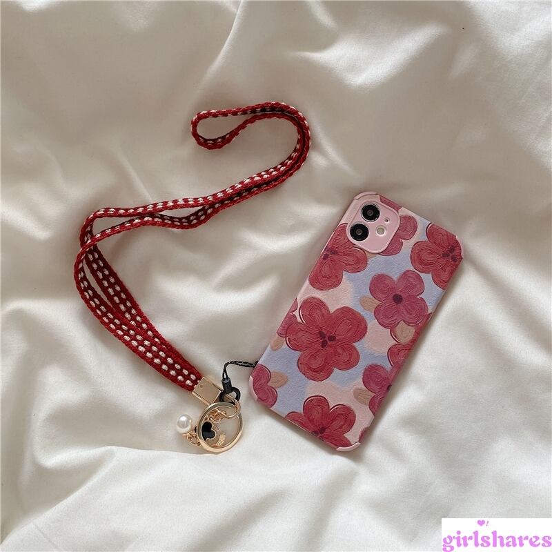 花柄 iPhone12 Proケース かわいい iPhone11 Proケース ネックストラップ付き iPhone 12 11 XS XR SE2 8 7Plusケース 携帯カバー かわいい 大人 オシャレ 女子 ギフト プレゼント 大人気♡