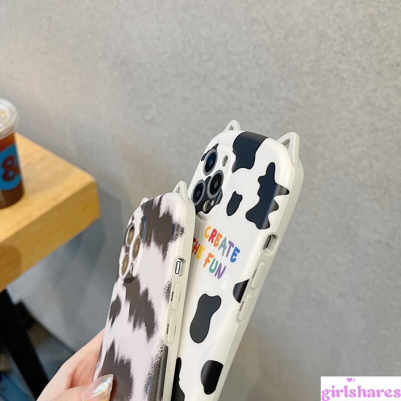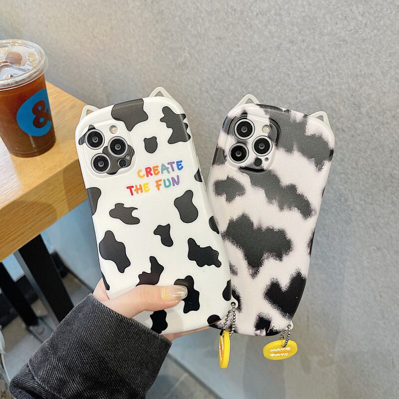 【耳付き】牛乳柄 iPhone12 Proケース かわいい iPhone11Proケース スマホケース iPhone 12 12mini 11ProMax 11 XSMAX XS XR X SE2 8 8Plus 7 7Plusケース 保護カバー 親友とお揃い 人気携帯カバー 韓国芸能人愛用 並行輸入品 オシャレ♡