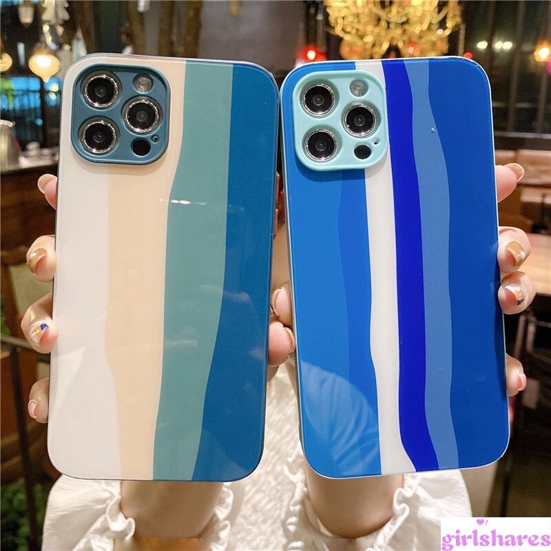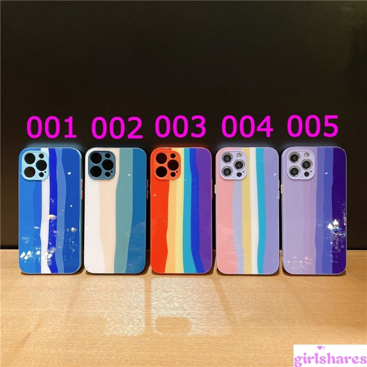 マルチカラー iPhoneケース 強化ガラス シンプル iPhone12Pro Max ~ iPhone7ケース 光沢 大人かわいい カラーバリエーション☆人気商品☆