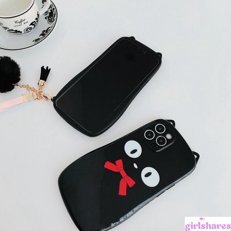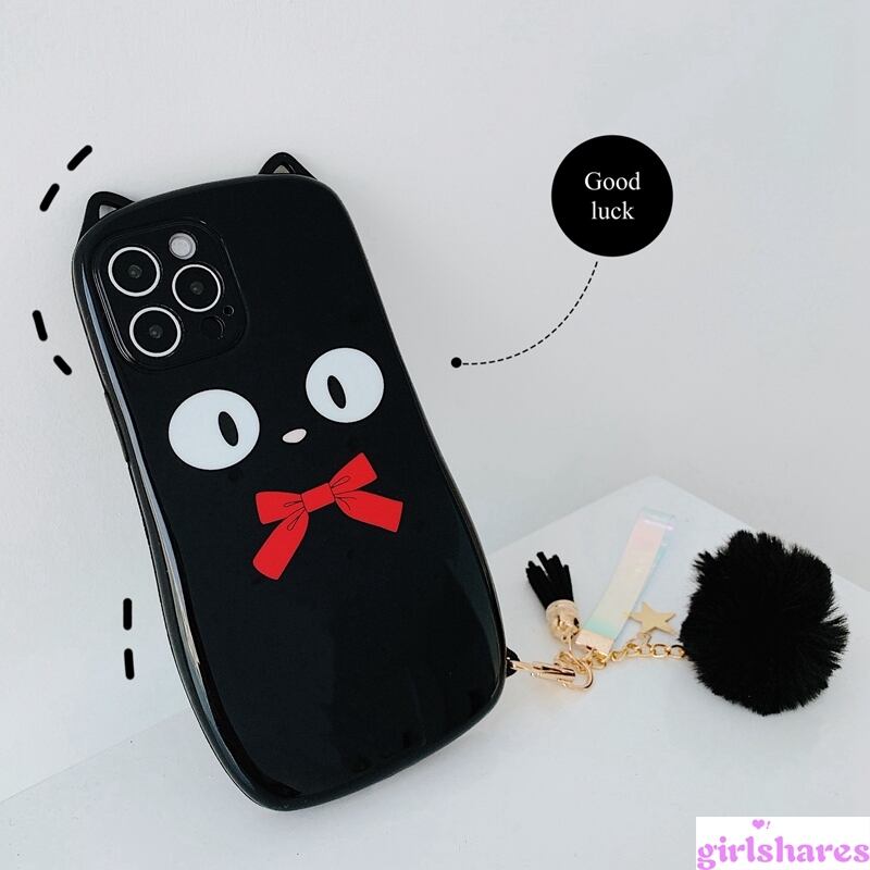 黒い猫ちゃん iPhoneケース ボンボン付き iPhone 12ProMax 12Pro 12 12Mini 11ProMax 11Pro 11 XSMAX XS XR SE2 8 8Plus 7 7Plusケース 耳 立体的 大人かわいい 女子力UP♪