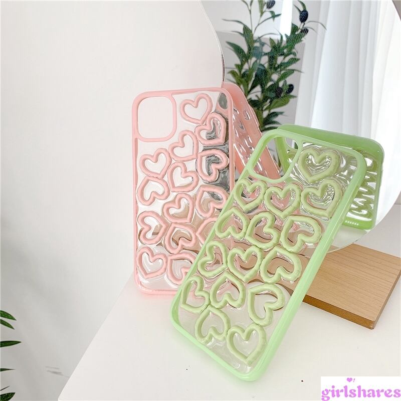 韓国女子愛用 iPhoneケース ハート 立体的 iPhone 12ProMax 12Pro 12 12Miniケース かわいい iPhone11ProMax 11Pro 11ケース クリア iPhone XS XR SE2 8 7Plusカバー スタイリッシュ 透明感 高級 親友とお揃い 人気スマホケース♡