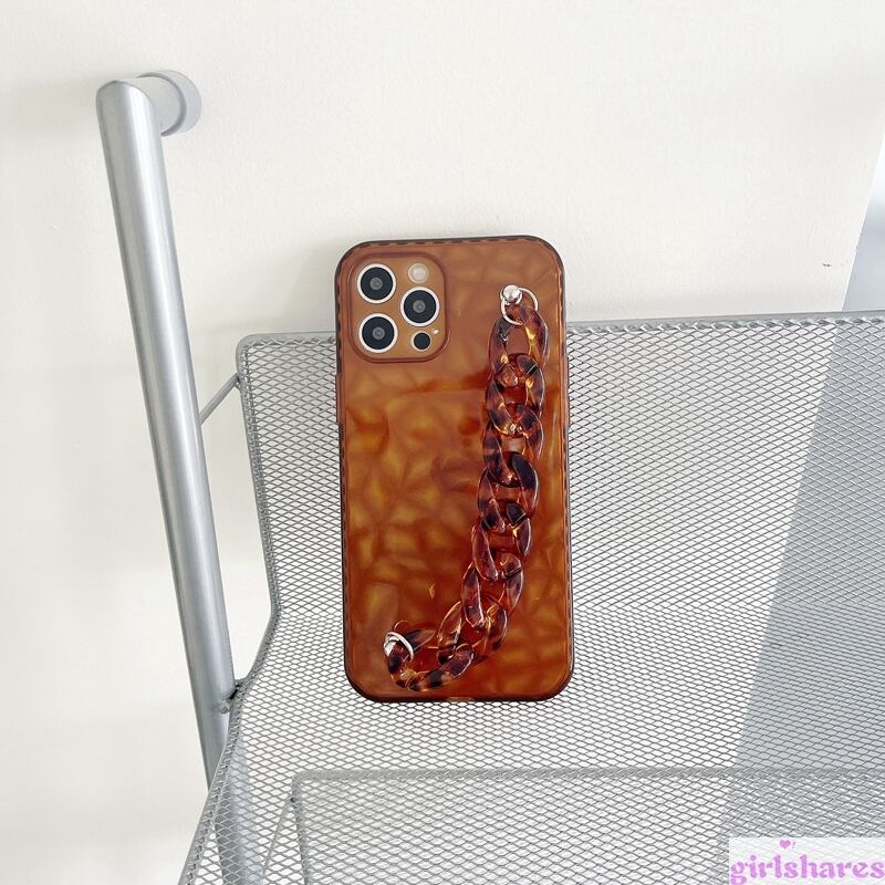 茶色 iPhone12Proケース ダイヤモンド柄 iPhone11Proケース 琥珀チェーン付き iPhone 12 11 XS XR SE2 8 7Plusケース ソフト クリアカバー かわいい 韓国ファッション プチプラ 人気スマホケース