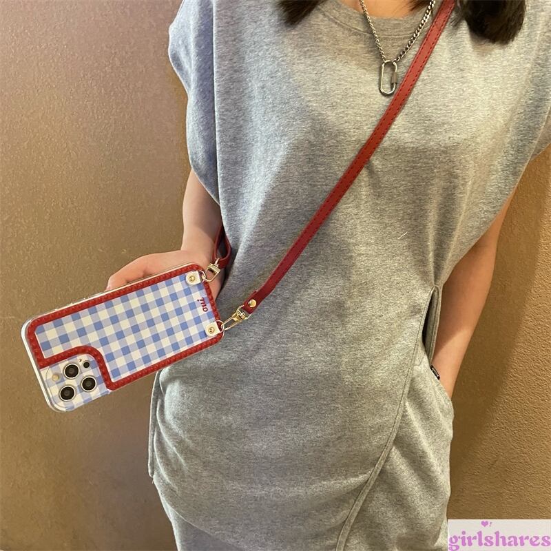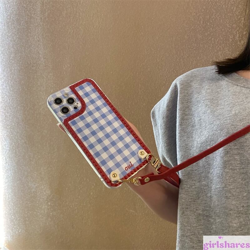 ショルダースマホケース iPhoneケース 調節可能 iPhone 12Pro 12 11Pro 11 XS XR SE2 8 7Plusケース チェック柄 ブルーxレッド かわいい エレガント 出かけ ショッピング パーディー 女子会 オシャレな携帯カバー 韓国ファッション プチプラ 人気おすすめ♡