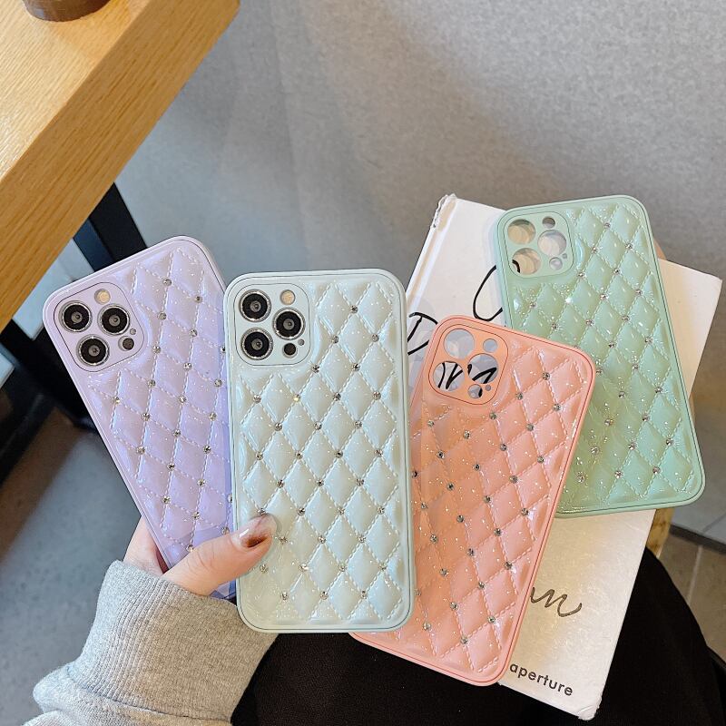 夏の新品 iPhoneケース 淡色 ライストーン付き iPhone 12Pro 12 11Pro 11 XS XR SE2 8 7Plusケース 光沢レザー製 スマホケース 大人可愛い エレガント 四色 オシャレ♪