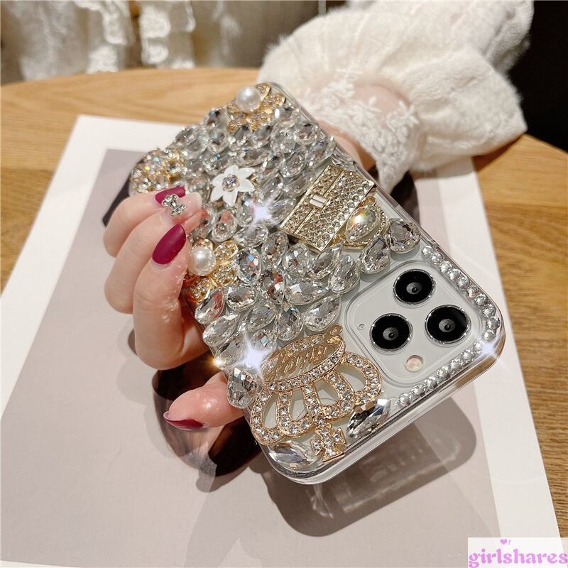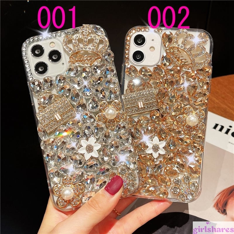 オリジナル iPhoneケース キラキラ ライストーン付き iPhone 12Pro 12 11Pro 11 XS XR SE2 8 7Plusケース デコケース 華やか レディース チャーム 大人かわいい オシャレ 二色 ハンドメイド・日本未発売