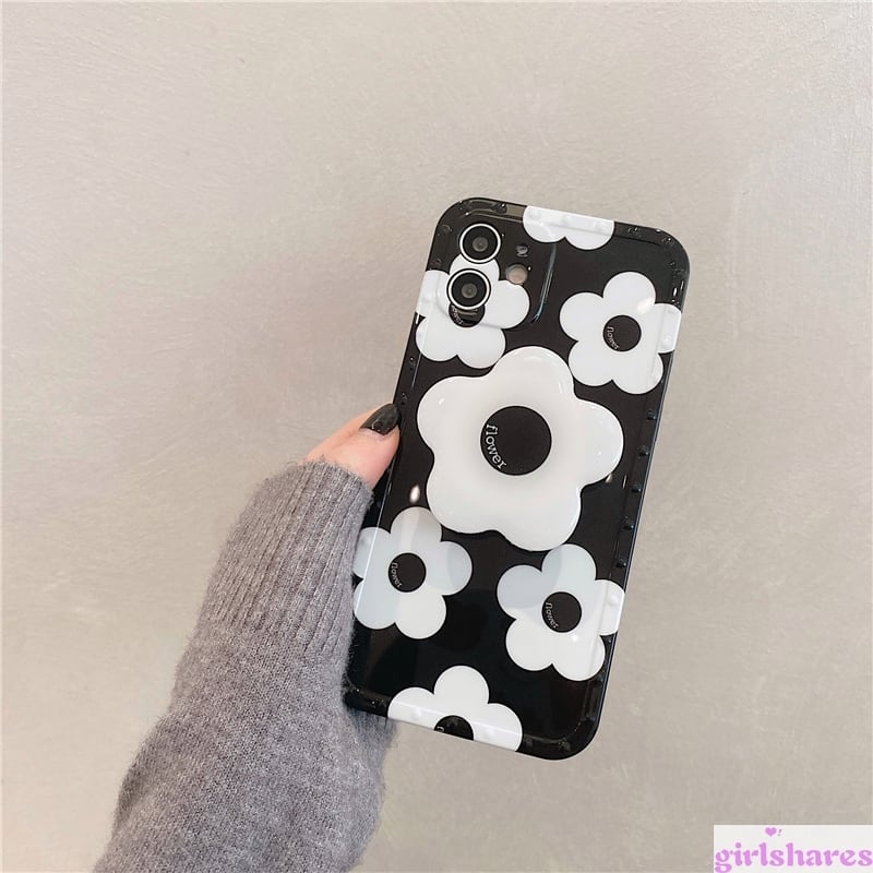 スマホグリップ付き iPhoneケース 花柄 iPhone 12Pro 12 11Pro 11 XSMAX XS XR SE2 8 8Plus 7 7Plusケース かわいい 韓国ファッション プチプラ スマホケース オシャレ 並行輸入♪